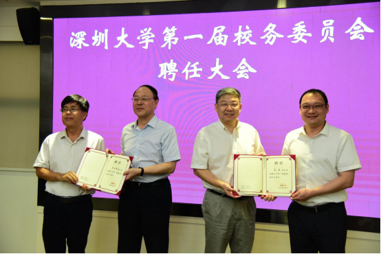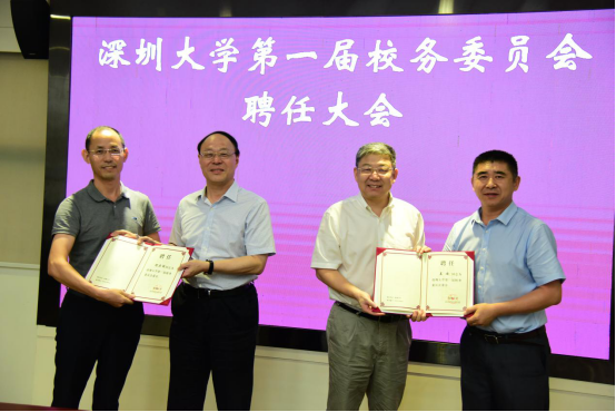 刘洪一、李清泉共同为校务委员会成员颁发聘任证书并合影留念。