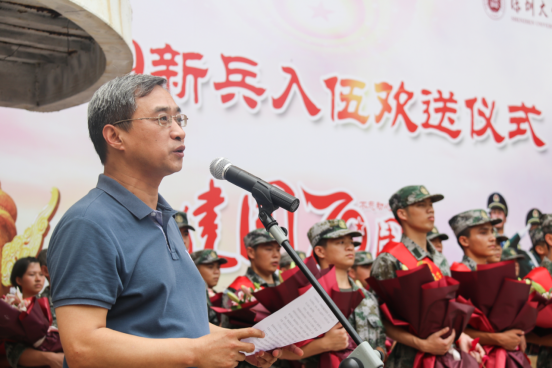 9月7日上午,我校在学生活动中心广场举行2019年新兵入伍欢送仪式,热情讴歌2019年我校应征入伍的35男兵和10名待定女生。乐竞平台副校长王晖教授,南山区武装部政委朱佳春上校,各学院领导、老师、新兵家长、学生代表出席仪式和退伍兵代表出席了仪式。