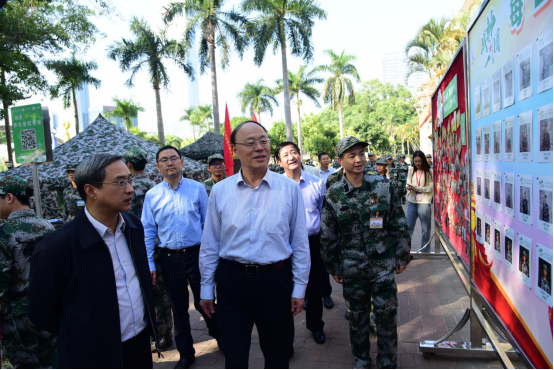 视察中,刘洪一一行首先来到标兵队和特战队训练方阵,该方阵队列整齐、朝气蓬勃、士气高昂。刘洪一详细了解同学们的训练情况和此次训练中新的急救技能培训,对训练成果给予了肯定。随后,刘洪一分别来到团部办公室、军训服务点和医务室,了解团部日常运作和军训后勤保障的基本状况;在医务室里,刘洪一亲切地慰问了伤病同学,并对医务人员的时刻坚守表示感谢。在田径场上,刘洪一来到各个连队,走到正在训练的师生当中,向大家送去亲切的问候,为参训学生竖起来大拇指点赞。他同时向连日来为军训工作辛勤付出的领导、教官和带队教师表示衷心的感谢,鼓励大家再接再厉,圆满完成军训任务。