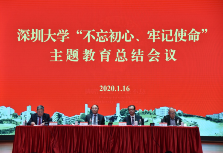 刘洪一指出,明年我们党将迎来百年诞辰,不忘初心方能行稳致远,牢记使命才能开辟未来。我们要紧密地团结在以习近平同志为核心的党中央周围,认真贯彻落实党中央、省委、市委部署要求,深化拓展主题教育成果,不忘初心、牢记使命,自强不息、接续奋斗,努力把乐竞平台建设成为引领城市文化发展、引领服务粤港澳大湾区建设、引领高等教育改革的世界一流创新型大学,为深圳创建社会主义现代化强国的城市范例,为实现“两个一百年”奋斗目标和中华民族伟大复兴的中国梦作出新的深大贡献!
