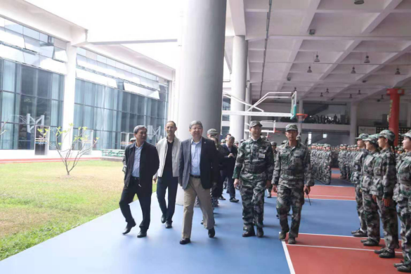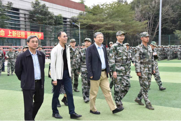 1月13日上午,校长李清泉来到粤海校区综合运动广场看望工作在军训一线的参训新生。副校长王晖,党政办、宣传部、学生部、武装部等部门相关负责人陪同调研。