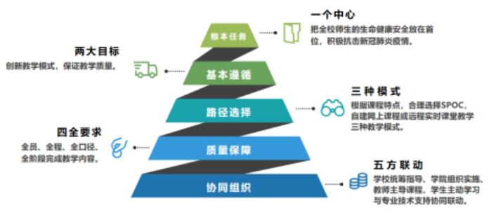 3月9日,学校正式开始线上教学。共有857门次课程在线教学,选课学生36974人次。在线教学的课程中有公共必修课149门次、专业核心课423门次、专业选修课244门次、公共选修课41门次。