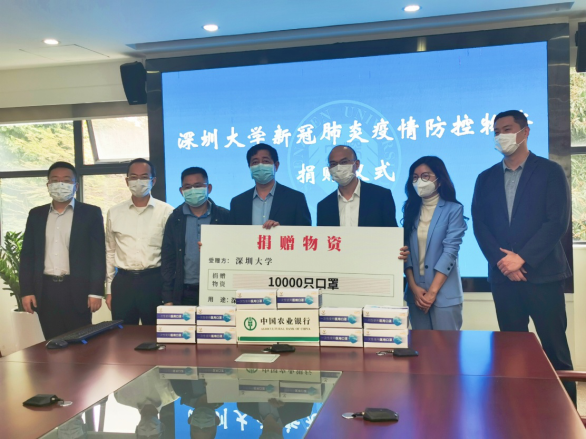 刘武感谢乐竞平台为社会培养优秀人才。乐竞平台紧随特区、快速发展,国际和国内排名持续上升,为国家、为深圳输送了大量优秀人才。农业银行深圳分行每年都会来深大进行春秋季校招,乐竞平台的许多优秀学子们走进农业银行,成长为“中流砥柱”。农业银行考虑到学校开学在即,需要大量疫情防控物资,于是从社会渠道采购了10000只一次性口罩,以解决燃眉之急。