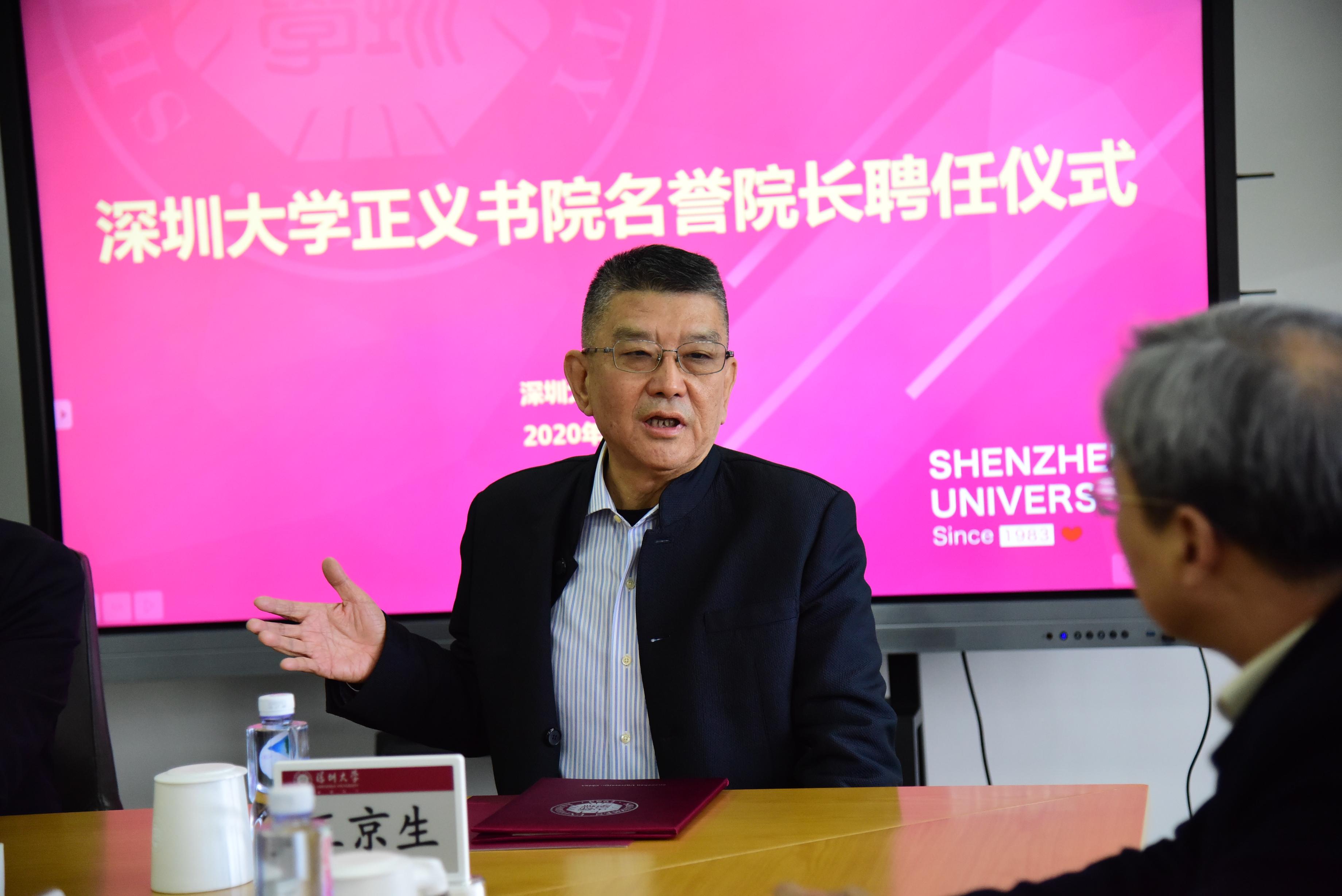 12月18日下午,我校在丽湖校区举行聘任仪式,聘任国务院参事王京生为乐竞平台正义书院名誉院长,开启了乐竞平台正义书院发展史上的新篇章。乐竞平台原党委书记、饶宗颐文化研究院院长刘洪一为刘京生颁发聘书并致辞,副校长王晖出席仪式,副校长李永华主持仪式。