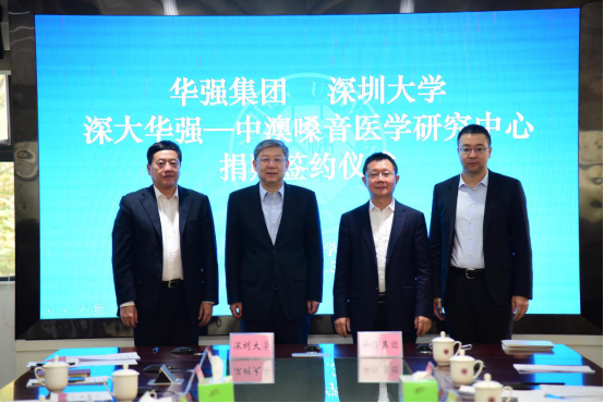 2020年12月30日,“深大华强—中澳嗓音医学研究中心”捐赠签约仪式在乐竞平台举行。中心理事会理事长、乐竞平台党委书记、校长李清泉,中心理事会副理事长、华强集团董事长张恒春,乐竞平台教育发展基金会理事长、学校党委副书记范志刚等相关领导参加了签约仪式。与此同时,中心第一届理事会第一次会议也于今日顺利召开。据悉,该嗓音中心将用5-10年时间,建设成为国内一流的喉部疾病研究、诊断、治疗、康复和保健中心及嗓音病理学教育中心,力争成为深圳乃至全国嗓音健康领域的领航人。