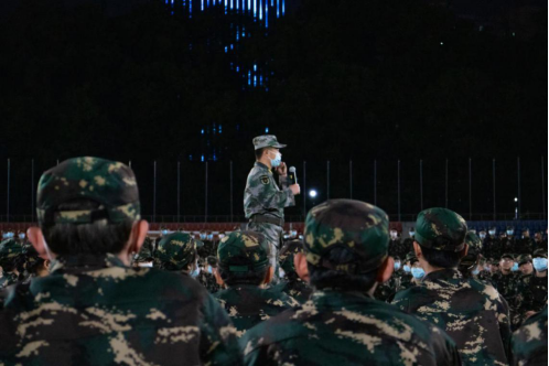 李清泉一行首先来到元平体育场看望一团师生。李清泉走访了一团团部、医务室及宣传组工作室,他格外关心学生们的身体状况,多次询问军训强度和每日学生的缺席情况,对伤病连学生们“轻伤不下火线”“争取早日归队”的精神表示赞赏;他还对学生们在疫情期间的春节返乡事宜非常关注,认真询问核酸检测安排情况。李清泉对学生们在训练中所展现出的认真态度和优异成果表示肯定,希望受训学生们再接再厉,在军训过程中增强自己的体魄,锻炼自己的意志;同时向连日来为军训工作辛勤付出的各位教官、带队教师以及医务人员表示感谢,鼓励大家圆满完成军训任务。