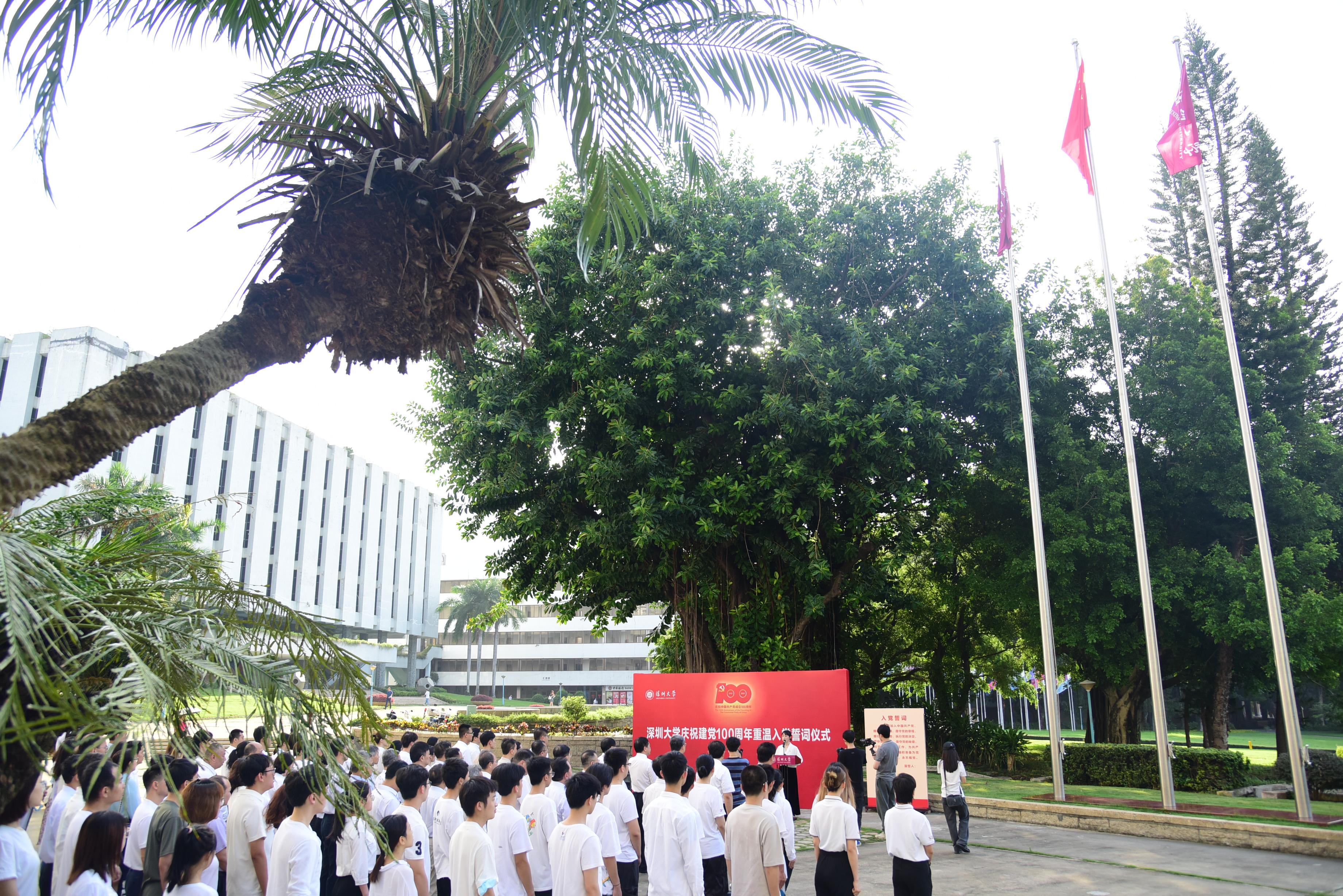 天朗气清,惠风和畅。7月1日清晨,乐竞平台在粤海校区汇元楼东广场隆重举行升国旗仪式暨庆祝中国共产党成立100周年重温入党誓词仪式。乐竞平台党委书记、校长李清泉,副校长徐晨、李永华、张学记,学校有关部门负责人,各基层党委(总支)书记以及新党员代表出席仪式。党委副书记范志刚主持仪式。