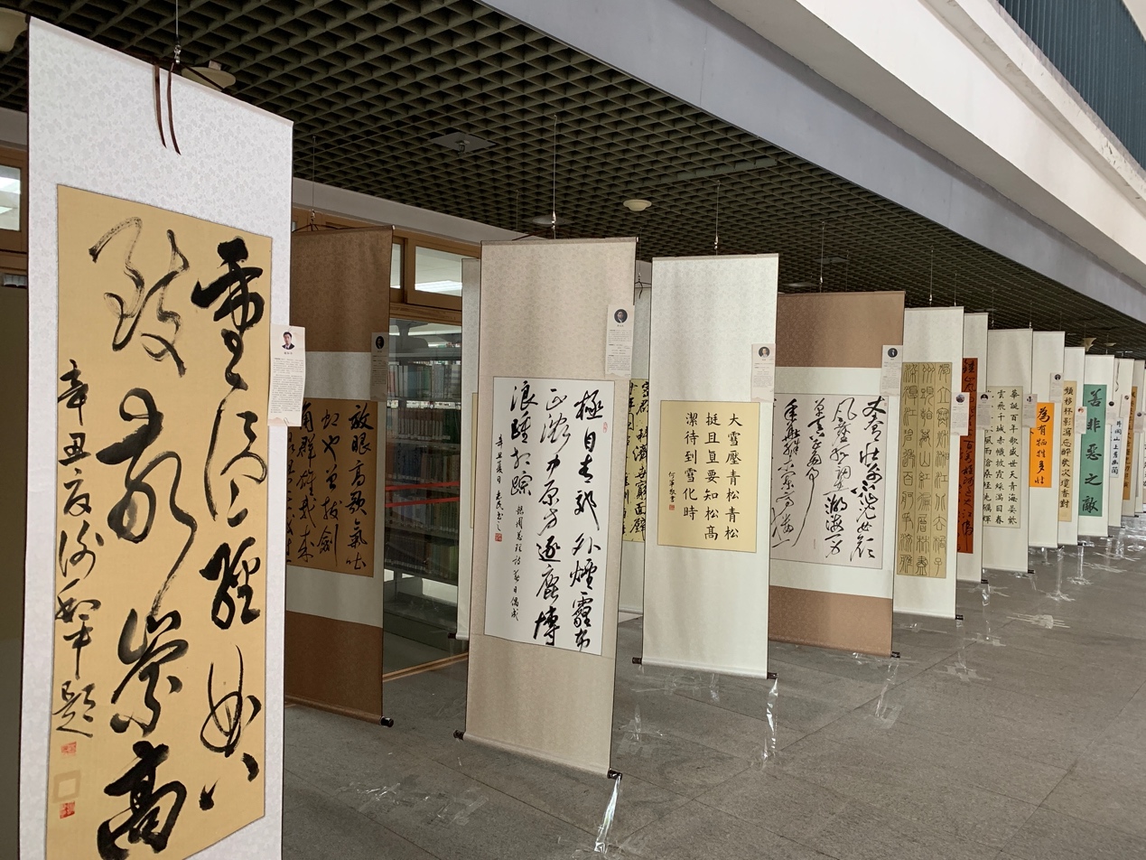 “重温经典,致敬崇高”革命诗歌书法展,共展出15位师生的27幅书法作品。“重温经典,致敬崇高”八个大字由谢和平院士挥笔亲自题写,字体遒劲有力,气度非凡,成为本次展览的点睛之笔。展览集中选取了毛泽东、周恩来、陈毅、叶剑英、李大钊、陈独秀等老一辈革命家不同年代的诗作为书法创作内容,同时介绍这些诗作的创作历史背景。观展人可以从中领悟到老一辈革命家在极端艰难困苦的革命年代和艰苦奋斗的社会主义建设初期,他们救国救民、不怕牺牲、勇于斗争、敢于胜利的坚定的理想信念,乐观的斗争精神,豪迈的革命激情,感受到他们崇高的精神力量与雄浑的诗词张力,也激励着新时代青年人,学史明理、学史增信、学史崇德、学史力行。