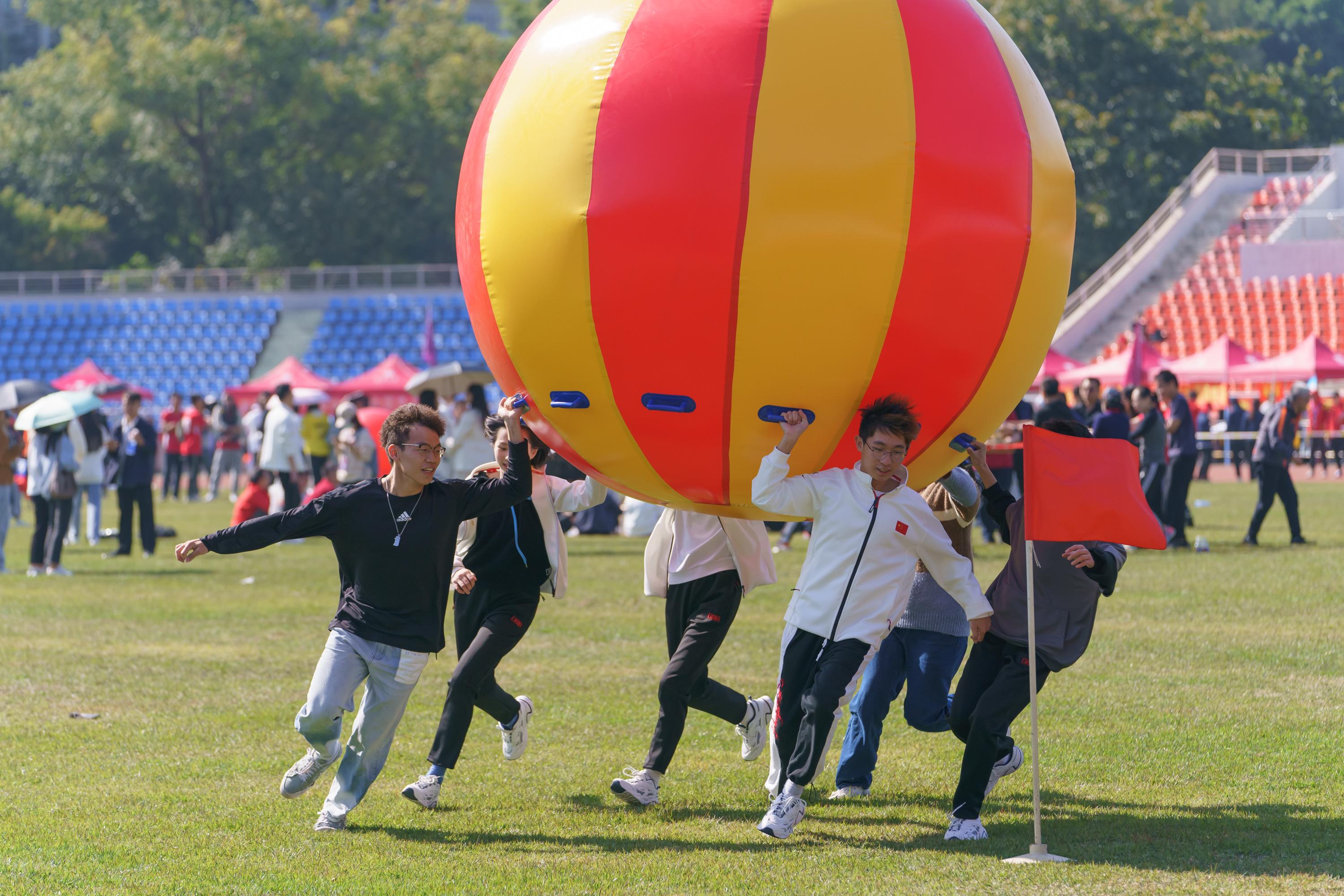 在“运转乾坤”项目中,每组六名队员需要托举比赛器材球体过肩完成共一百米的折返跑。来自管理学院的王老师说,大家都是来到现场自愿报名、临时组队,这个项目需要综合考虑上场队员的性别、身高、跑步速度等因素,“十分考验团队合作,很有意义。”一名第一次参与此项目的法学院大一学生觉得比赛过程很累但十分有趣,虽然大家都是第一次参加,但配合还不错。“运转乾坤”项目负责人对新闻中心记者说:“该项目延续往年风格,但每年都会看到很多熟悉的面孔,师生们的参与度很高。”