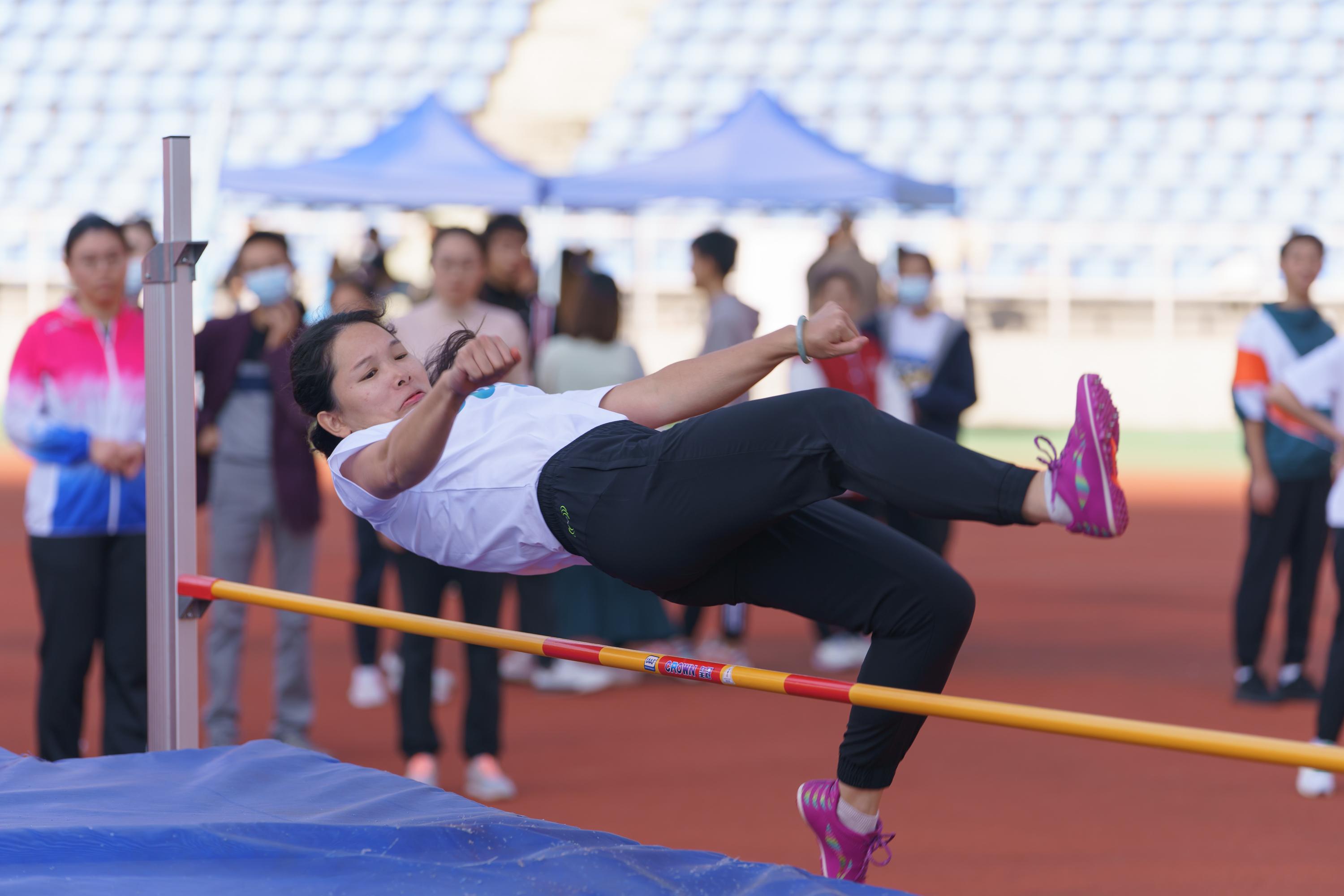 在田径场的另一头,教工组女子跳高比赛中,运动员们做好热身运动并互相鼓励、交流经验。最终,乐竞平台总医院的林小玲披荆斩棘以1.16米获得了第一名的好成绩。