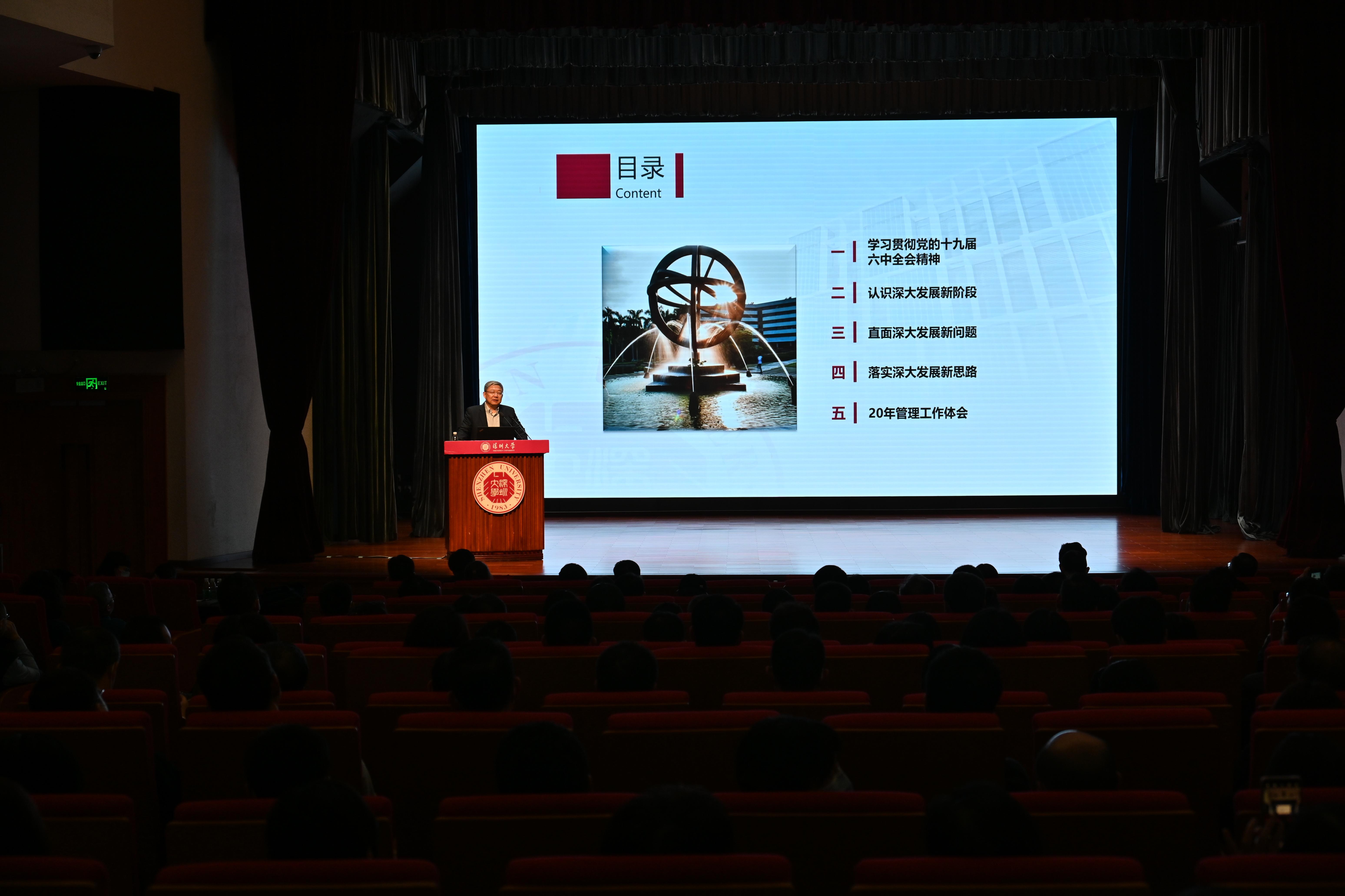 范志刚强调,各部门、各学院要认真学习领会、深入贯彻落实党的十九届六中全会精神,切实将党的十九届六中全会精神融入到办学治校、教书育人的具体实践中,融入到创建世界一流创新型大学的不懈探索中。
