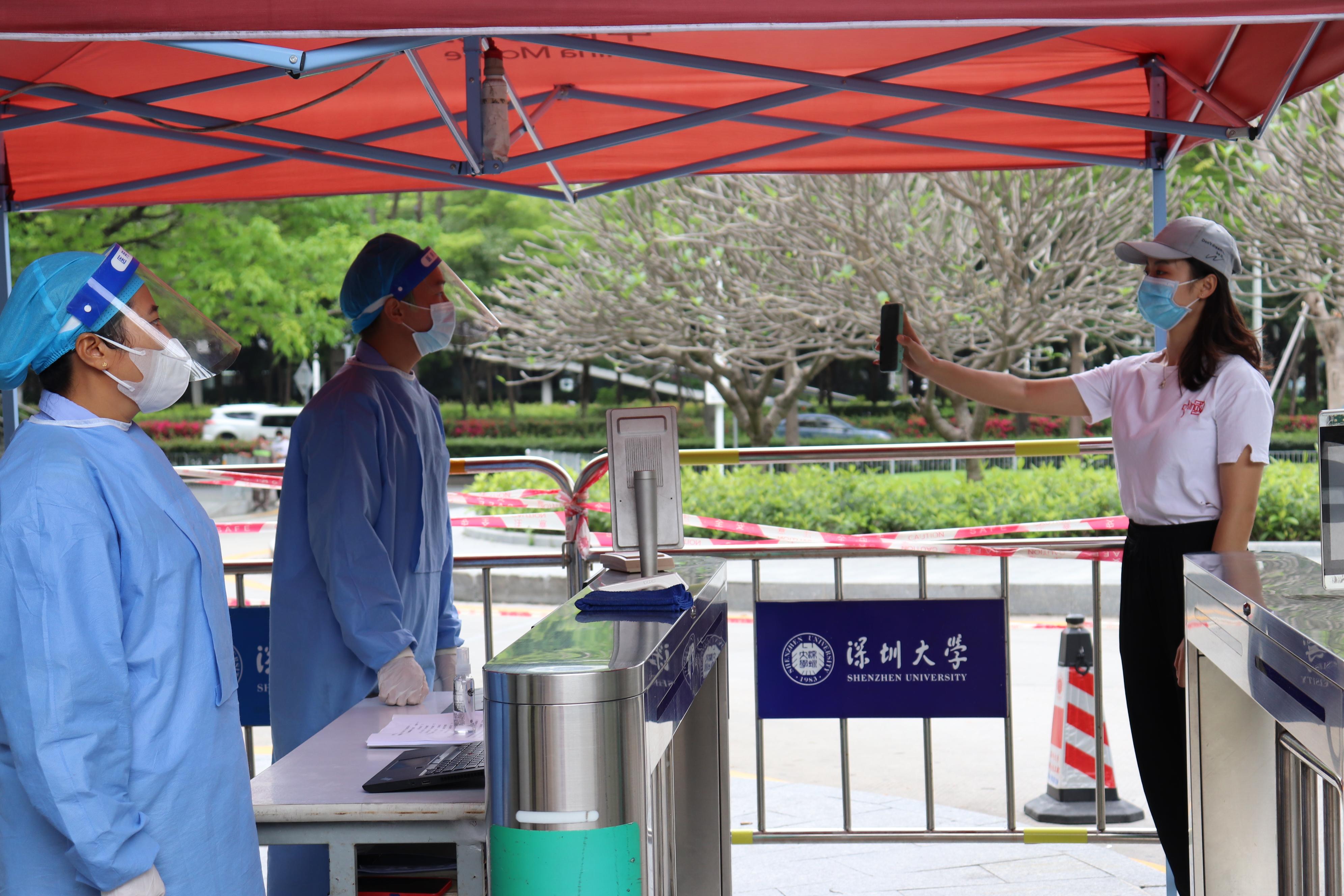演练分别设置“学生宿舍楼中检测到体温异常学生”、“在校门口发现异常情况”两个应急处置场景。在场景一中,学校宿舍管理员发现异常后,及时上报并确认信息,各单位及部门迅速响应,联系校医院出诊并核查情况,确认后及时通报区疾控中心并进行后续消杀与封控。在场景二中,学校安保人员在校门口发现异常情况后,各部门严格按照疫情防控要求以及校园疫情处理方案进行应急处置,确保校园环境安全。