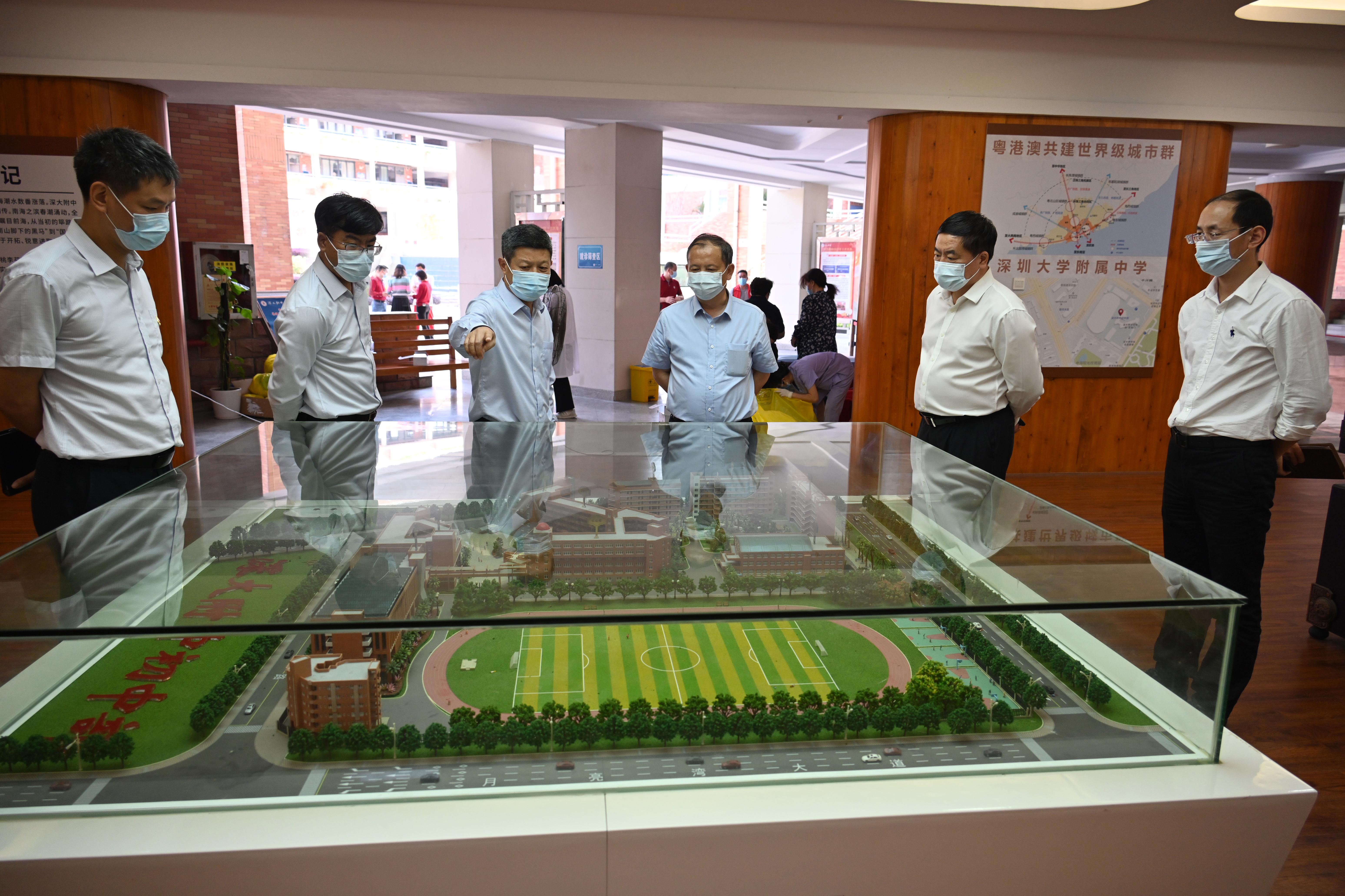附属教育集团总校长,深大附中党委书记、校长刘为基和深大附属实验中学校长、深大附属中学副校长刘书安分别就附属教育集团概况、附属中学和附属实验中学的办学情况作汇报,围绕办学理念、办学特色、招生情况、师资队伍、办学成绩、发展目标、困难与挑战等方面进行详细介绍,并就校园疫情防控和近期返校工作作了汇报。