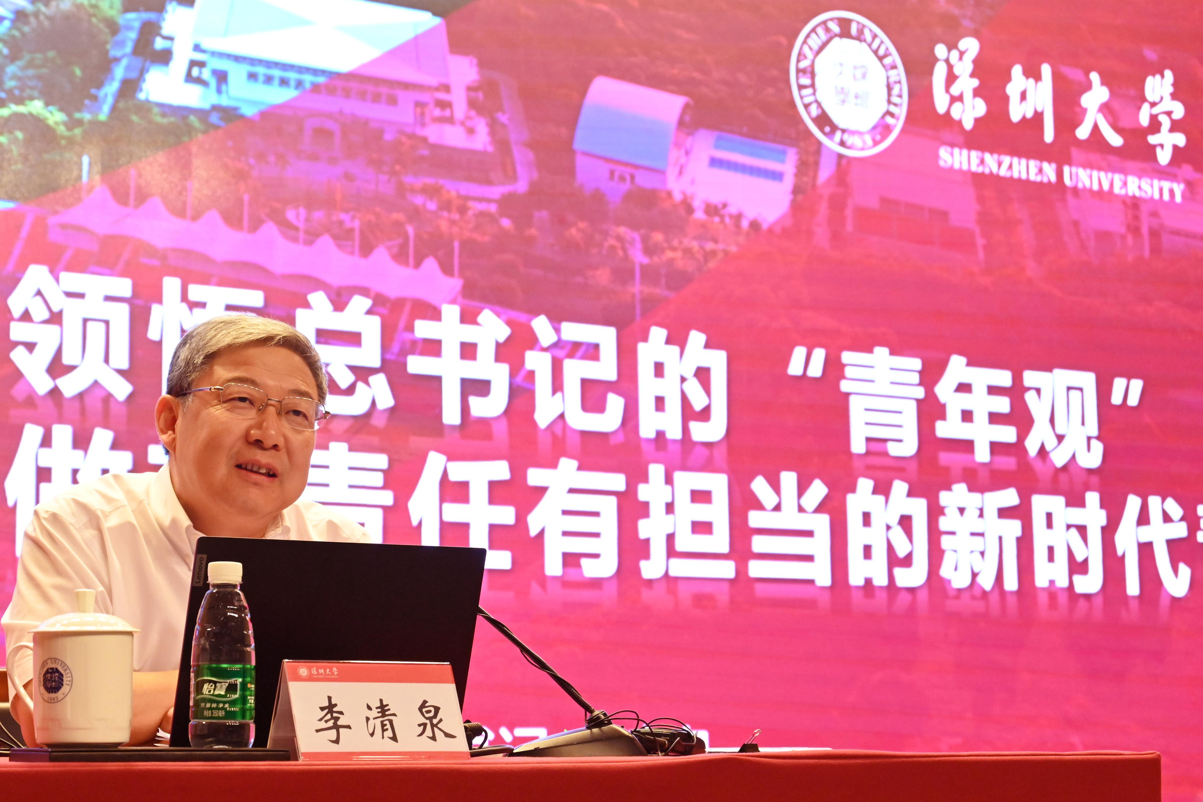 领悟习近平总书记“青年观”,做有责任有担当的新时代青年。6月7日下午,学校党委书记李清泉在粤海校区汇星楼一号报告厅为师生讲授了题为《领悟习近平总书记“青年观”,做有责任有担当的新时代青年》思政课。粤海和丽湖两个校区的师生代表聆听了此次讲座,其中丽湖校区师生在守忠楼一楼报告厅采用线上视频的方式同步学习。