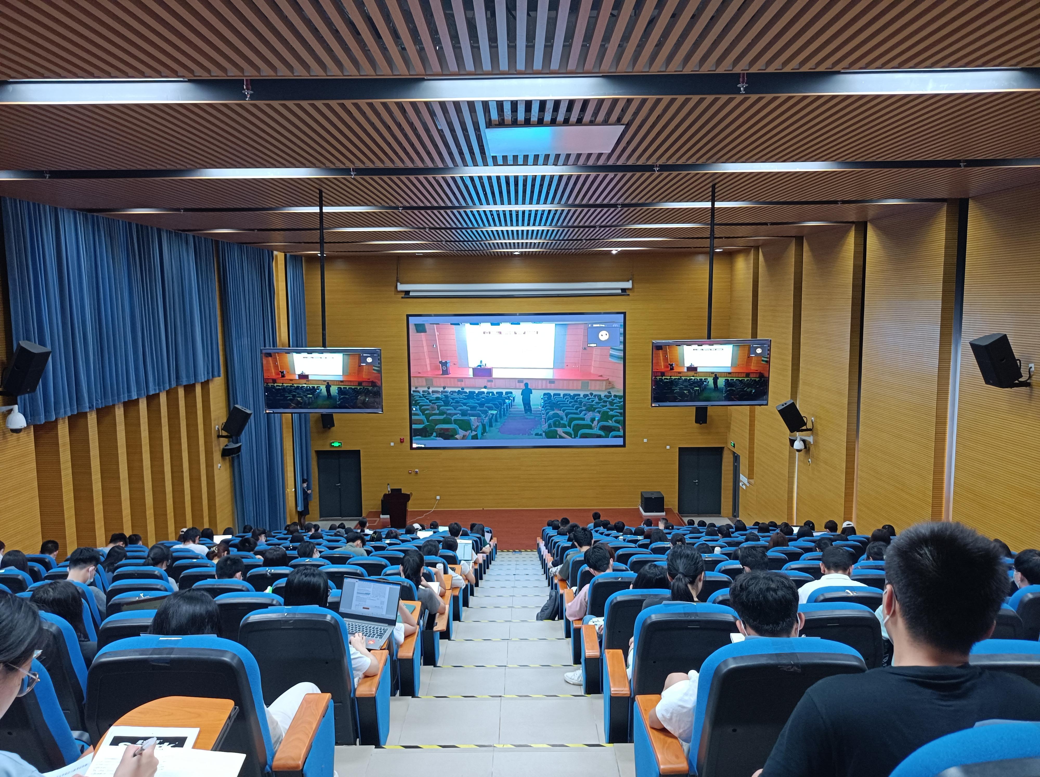 在场师生认真倾听思政课。来自传播学院的周同学在课后深有感悟地说:“听了李书记的思政课,我觉得很有收获。做一个有责任有担当的青年人,应把大的梦想落实到小的行动上,不负青春韶华,踏石留印、抓铁有痕,时间不会辜负一直肯努力的人!”在丽湖校区守忠楼报告厅通过线上学习的同学表示,虽然没有在粤海校区报告厅主课堂聆听,但是学校的“智慧课堂”大大方便了同学们听课,李书记带领大家深入学习领会习近平总书记的“青年观”,令同学们收获颇丰,感悟良多,“作为新时代的大学生,尤其是身处改革前沿、创新精神浸润中的深大学子,应苦练本领,做德才兼备的未来生力军,为实现中华民族伟大复兴贡献青春力量!”
