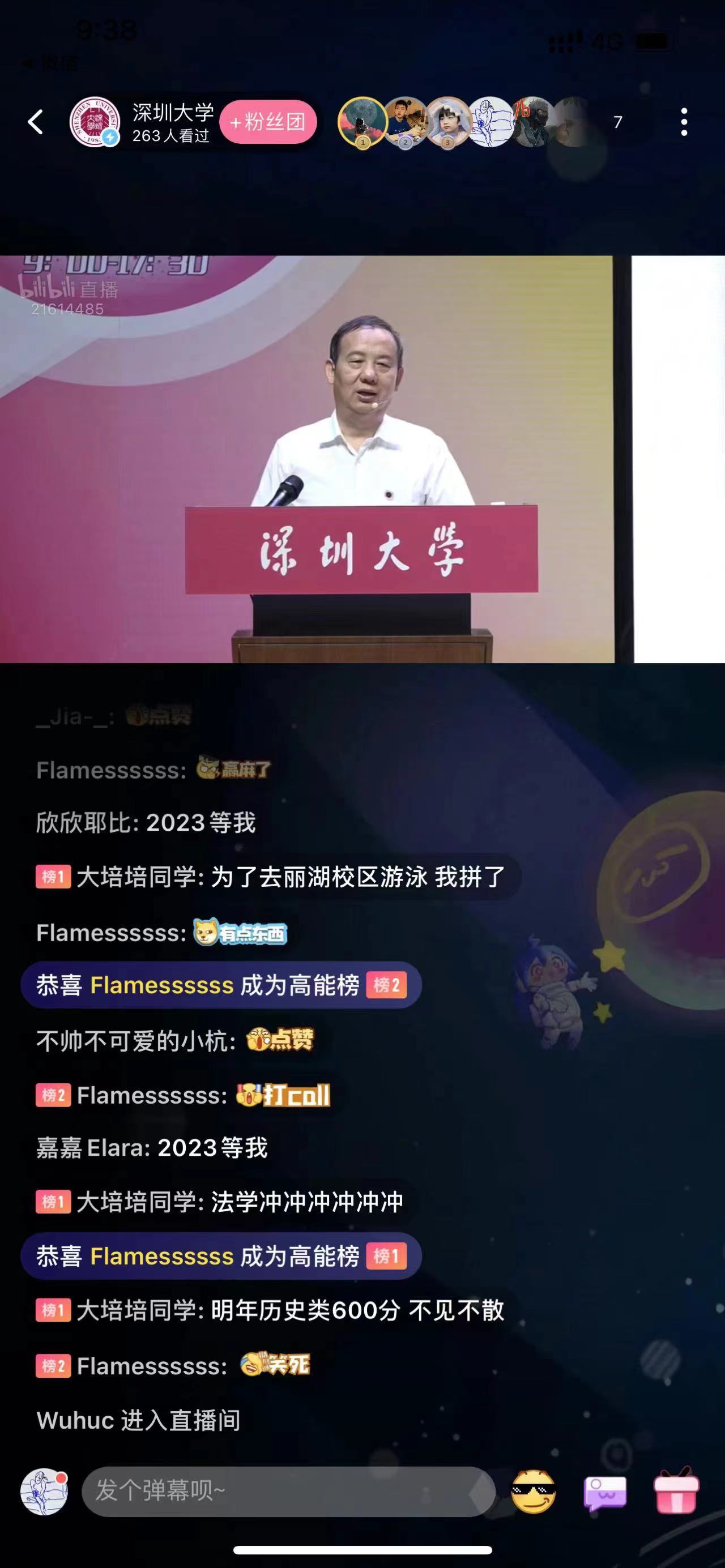 直播中,获得学校本科生最高荣誉“荔园卓越之星”的外国语学院2019级西班牙语专业学生彭梓洲,分享了他在深大的成长之路:“三年的学习生活让我深刻领悟到了‘自立、自律、自强’校训的精神内涵。深大注重学生的自由自立、全面发展和综合能力,同时也注重对学生创业和创新能力的培养,为学生提供包容开放的平台。在深大的大学时光里,每位学子都可以尽情发挥自己的才华,在探索之中找到自己人生的目标。”