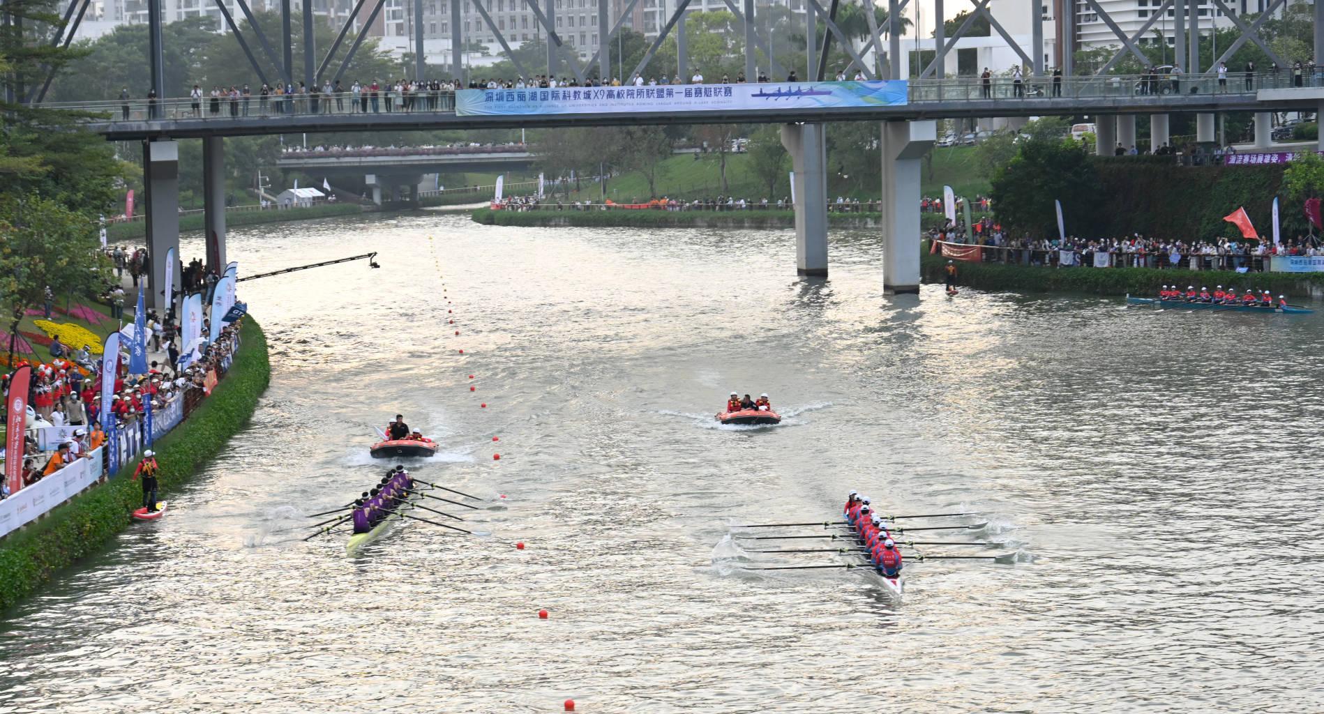 每站角逐,河面上都回荡着振奋人心的助威声;每场较量,选手们都严阵以待,全力以赴。水上,“速度与激情”在精彩演绎;岸边,观众与选手心系一处,同频共振……赛艇,不仅增强了各支参赛队伍的凝聚力,更成为各单位之间以赛会友、携手共进的纽带。一场赛艇比赛,在整个深圳掀起了活力的动感热潮、生态的绿色热潮、科技的前沿浪潮。