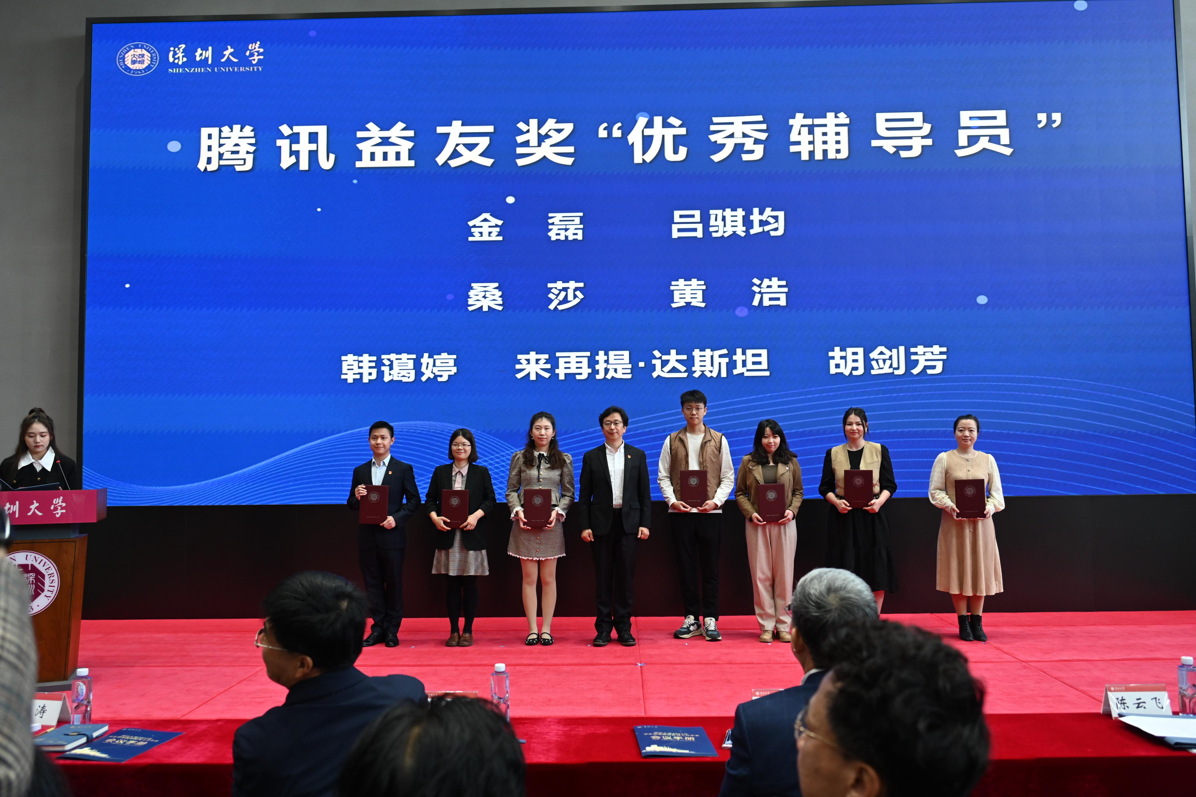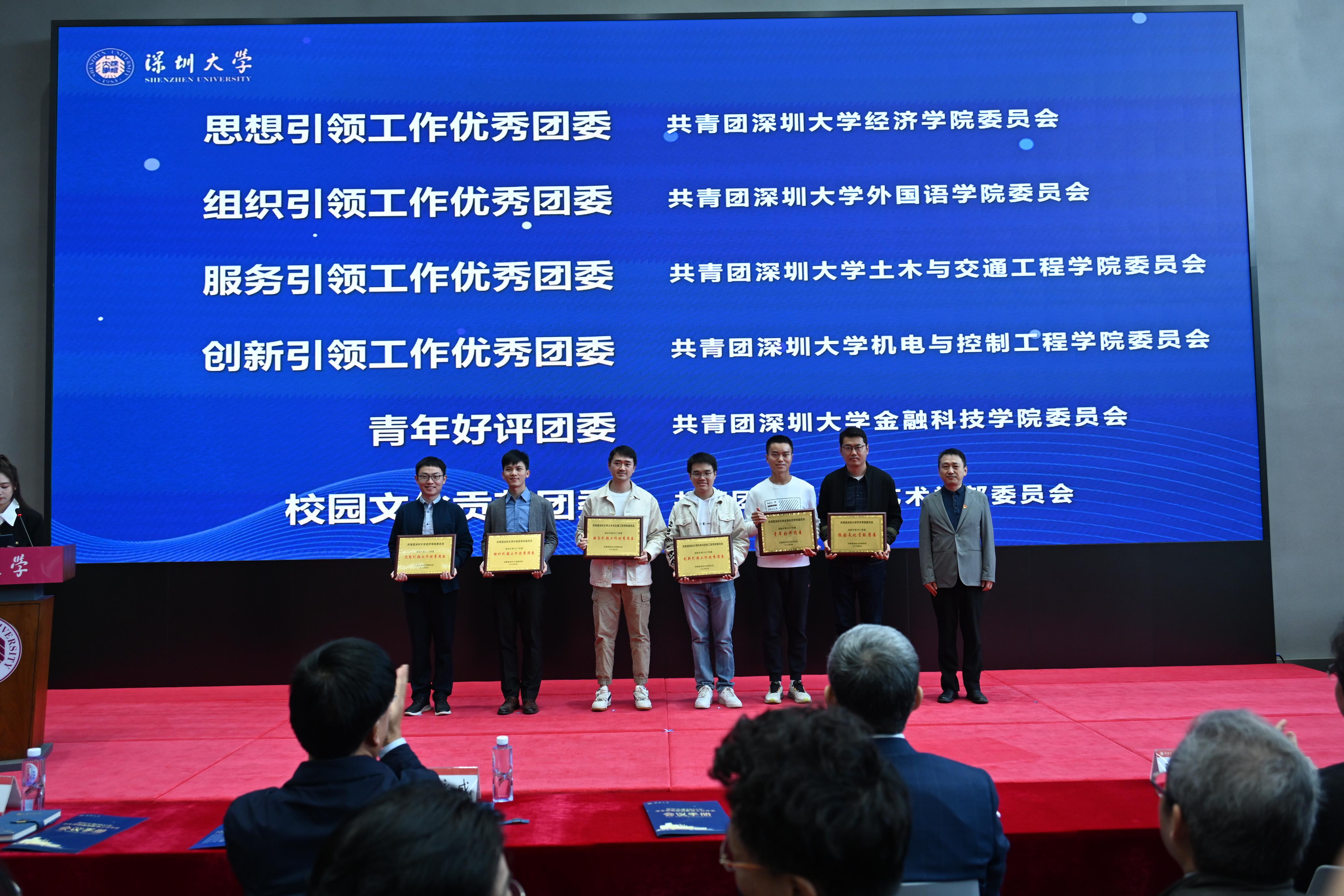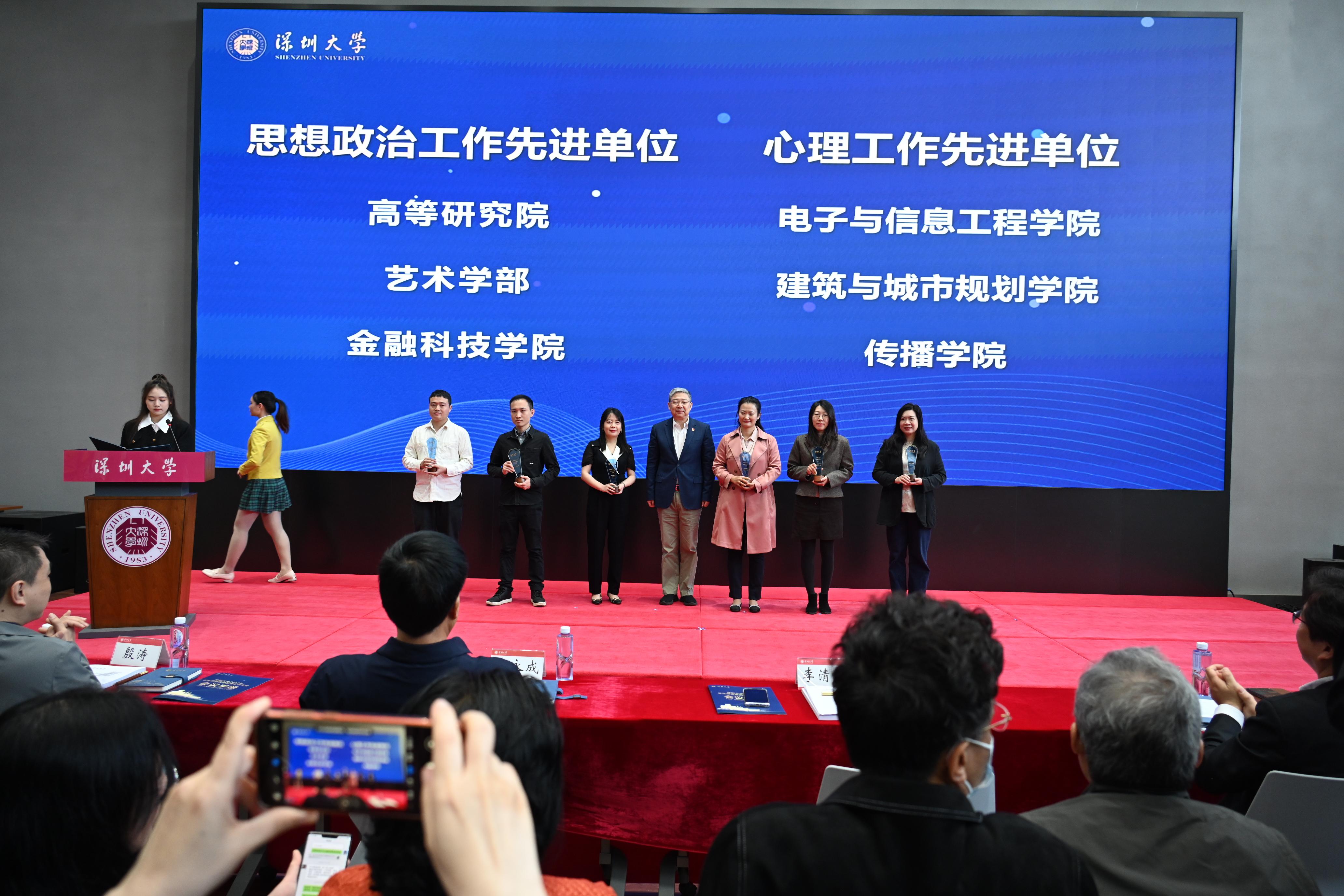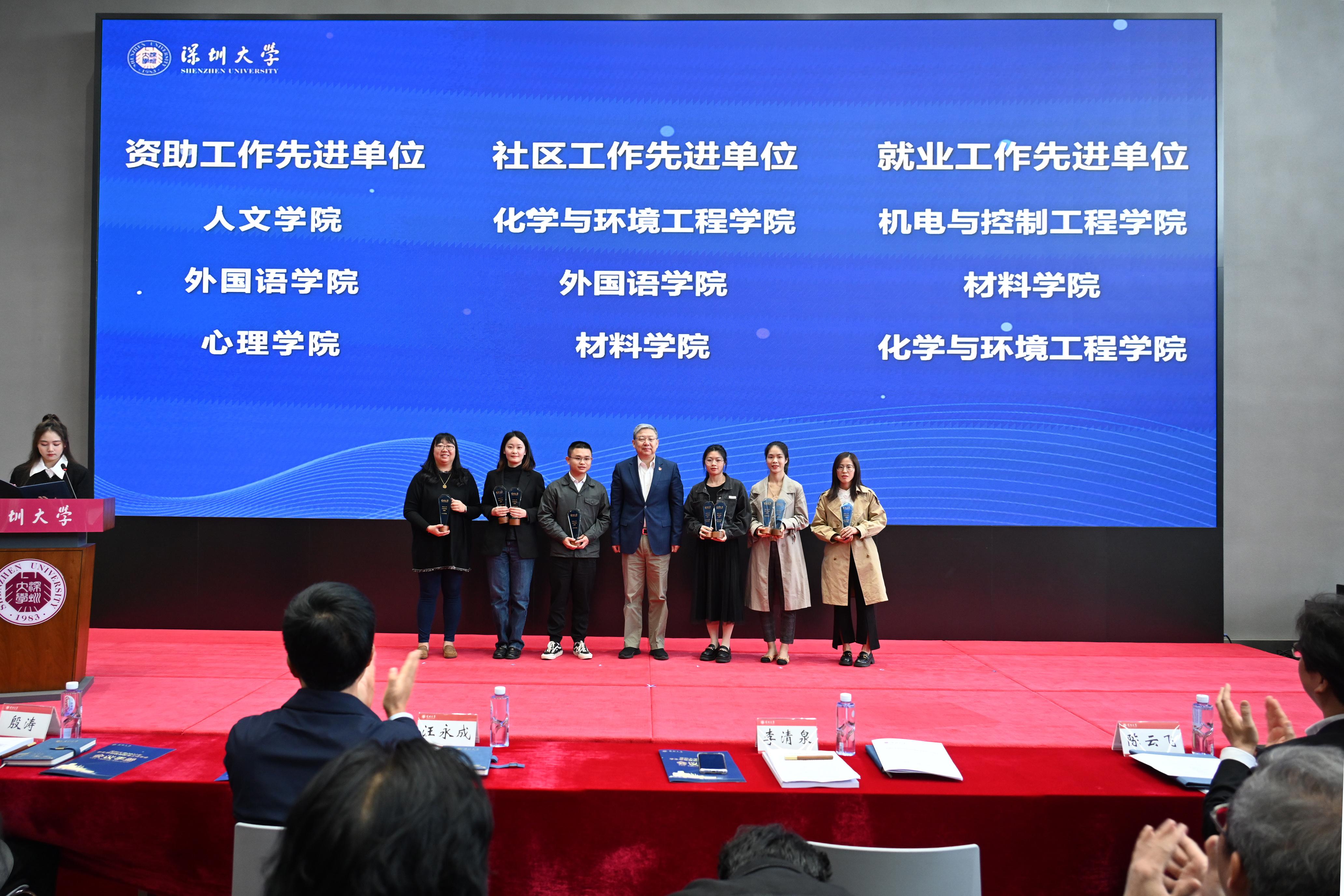 会议还表彰了2022年度在学生思想政治教育工作中涌现出来的先进集体和优秀个人,李清泉、汪永成等为学生思政工作先进单位、优秀个人颁奖并合影留念。在先进集体颁奖环节,高等研究院等3个学院获评“思想政治工作先进单位”;电子与信息工程学院等3个学院获评“心理工作先进单位”;人文学院等3个学院获评“资助工作先进单位”;化学与环境工程学院等3个学院获评“社区工作先进单位”;机电与控制工程学院等3个学院获评“就业工作先进单位”;共青团乐竞平台数学与统计学院委员会等4个单位获评“五四红旗团委创建单位”;共青团乐竞平台经济学院委员会获评“思想引领工作优秀团委”;共青团乐竞平台外国语学院委员会获评“组织引领工作优秀团委”;共青团乐竞平台土木与交通工程学院委员会获评“服务引领工作优秀团委”;共青团乐竞平台机电与控制工程学院委员会获评“创新引领工作优秀团委”;共青团乐竞平台金融科技学院委员会获评“青年好评团委”;共青团乐竞平台艺术学部委员会获评“校园文化贡献团委”。在优秀个人颁奖环节,劳宇轩、黄玉如等17人获评“腾讯益友奖”;张建霞、黄晓聪等8人获评“乐竞平台首届辅导员技能大赛奖”。