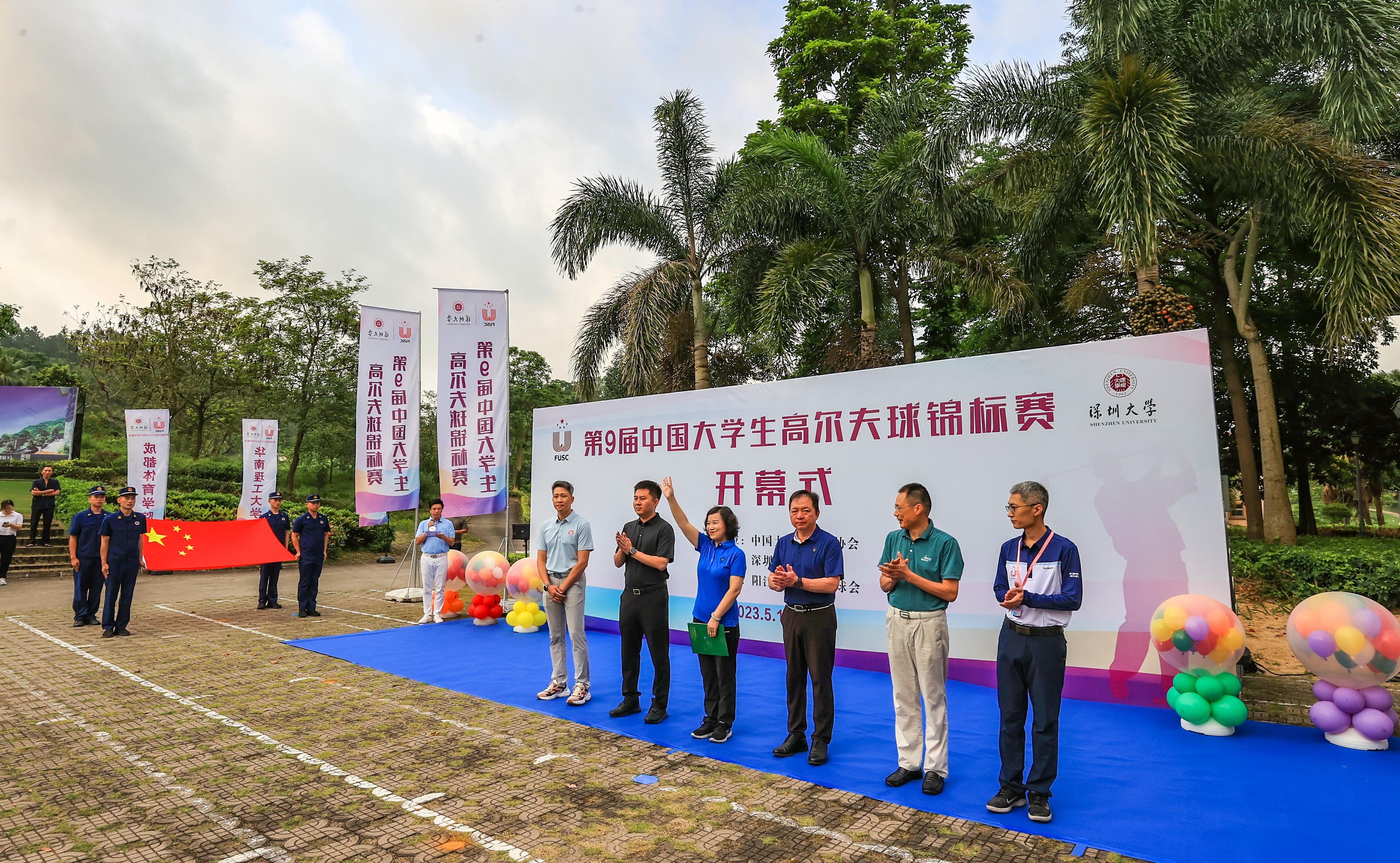 乐竞平台副校长张晓红,乐竞平台体育学院党委书记、高尔夫学院院长姚正武,中国大学生体育协会项目主管田靖夫,阳江涛景高尔夫球会总经理黄和峰,深圳市高尔夫球协会副秘书长邓汉敏,高尔夫球国际级裁判、本届赛事裁判长白东哲等嘉宾出席开幕式。
