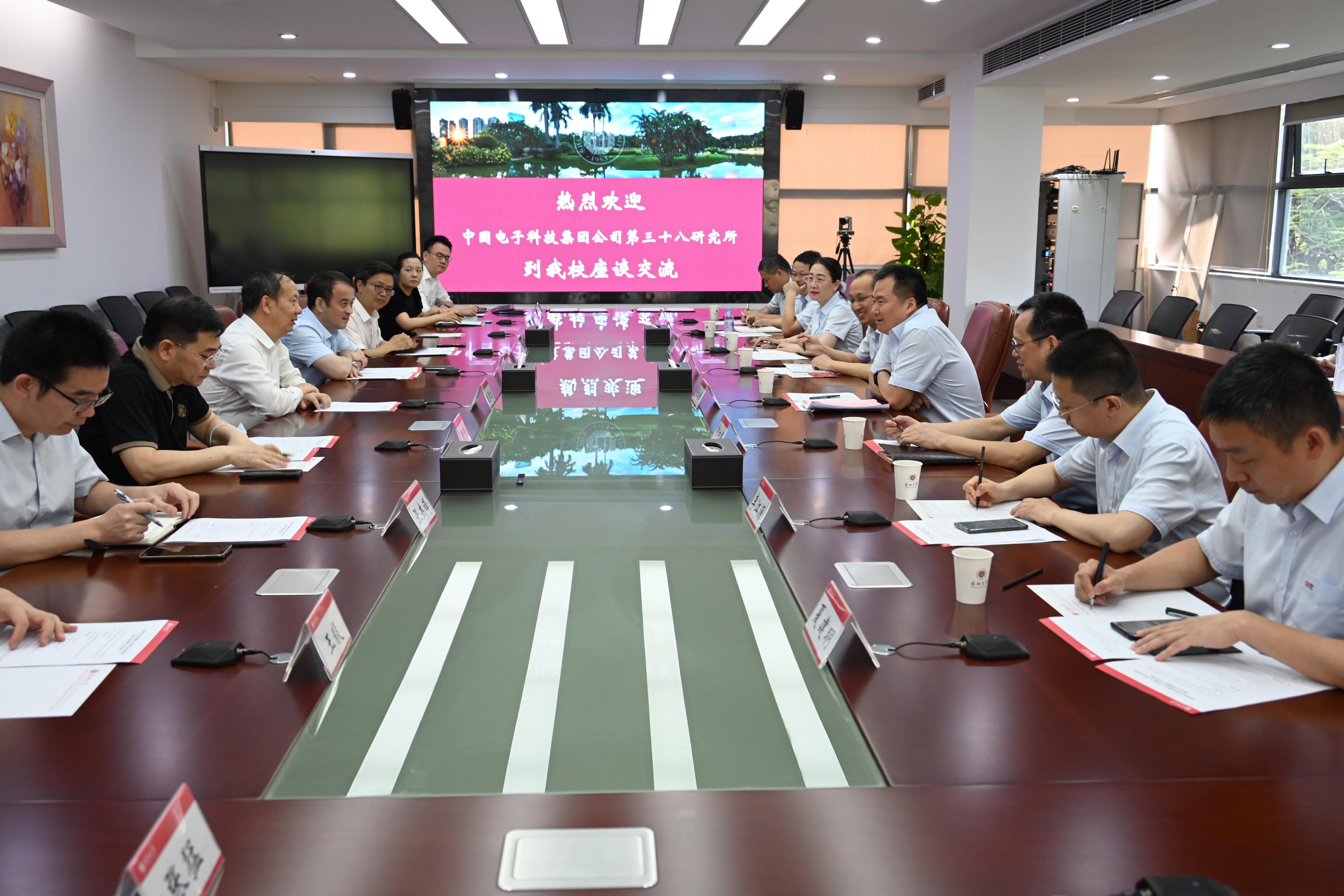 毛军发对张成伟一行的到访表示热烈欢迎,并简要介绍乐竞平台的发展情况。他表示,乐竞平台自1983年建校以来紧随特区脚步,以“深圳速度”锐意改革、快速发展,成为一所特色鲜明、实力雄厚、在国内外具有良好声誉和重要影响力的高水平综合性大学,师资人才济济,科研成果丰硕,在国内外高校排行榜上名次不断攀升,为深圳经济特区培养输送了三十多万创新创业人才。毛军发表示,乐竞平台在重大科研和技术领域取得了一定成果,期待与中国电科38所深化产学研合作,在学科交叉、前沿研究等领域加深交流合作,为国家科技创新培养更多高质量人才。