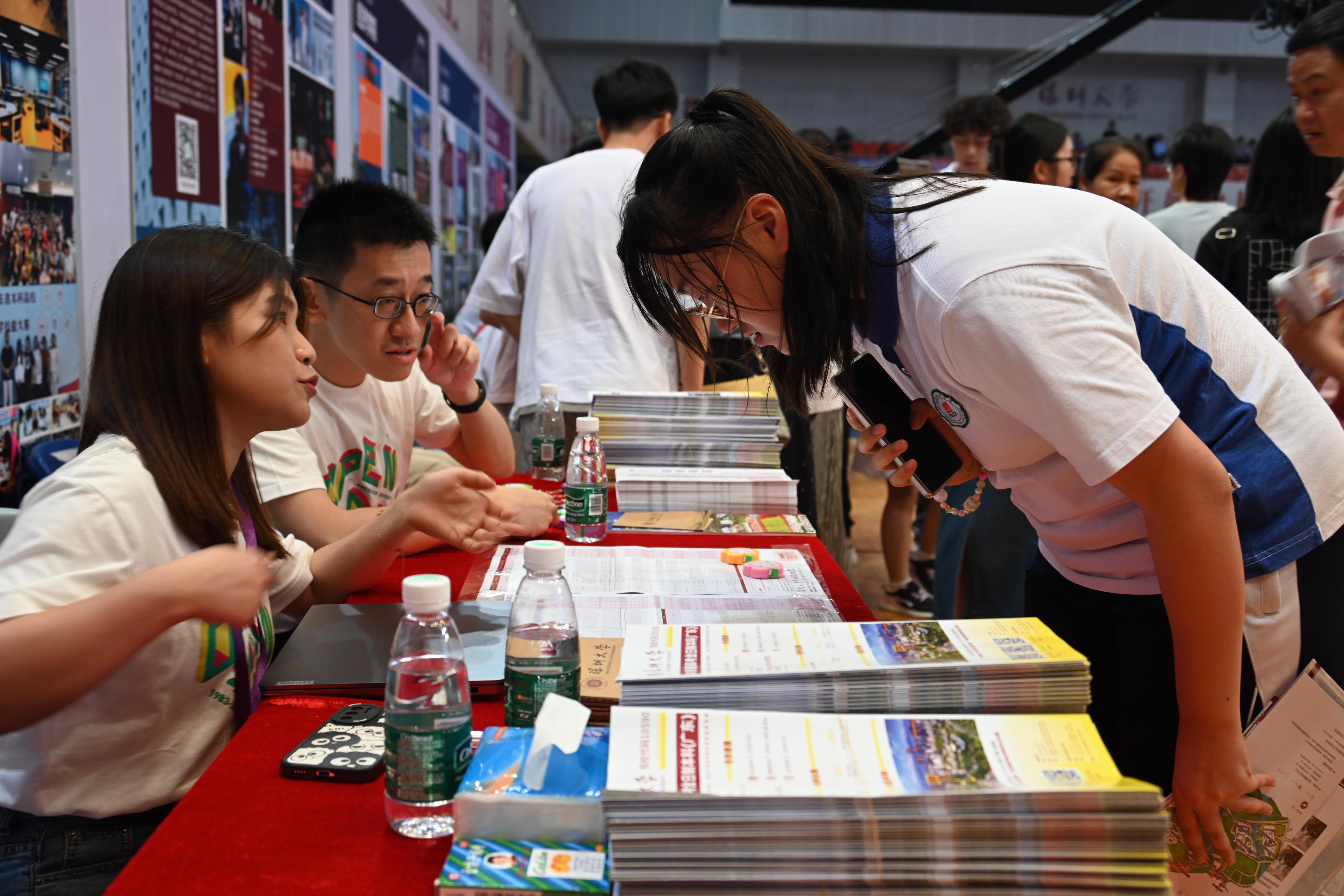 “明天出成绩,我十分希望能够报考深大!”毕业于深大附中的应届生谢同学兴奋地说,“这次校园开放日让我更了解深大的环境,让我更加坚定了自己内心的选择。”来自东莞的王先生表示,校园开放日令他更方便、直观和全面地了解深大,学校无论师资还是环境都在深圳数一数二,“孩子想要考取的是‘人工智能’相关专业,如果成绩达标,我们十分乐意报考深大!”还有一些非应届生和家长也提前来深大了解情况。邓女士的孩子读高二,把深大当作高考目标,但是对未来的专业选择不太懂,因此看到校园开放日就立马报名参加了。邓女士表示,带着孩子来校园里咨询、参观、体验,让孩子更了解深大、了解自己感兴趣的专业,能让孩子学习更有干劲,争取明年考上深大。