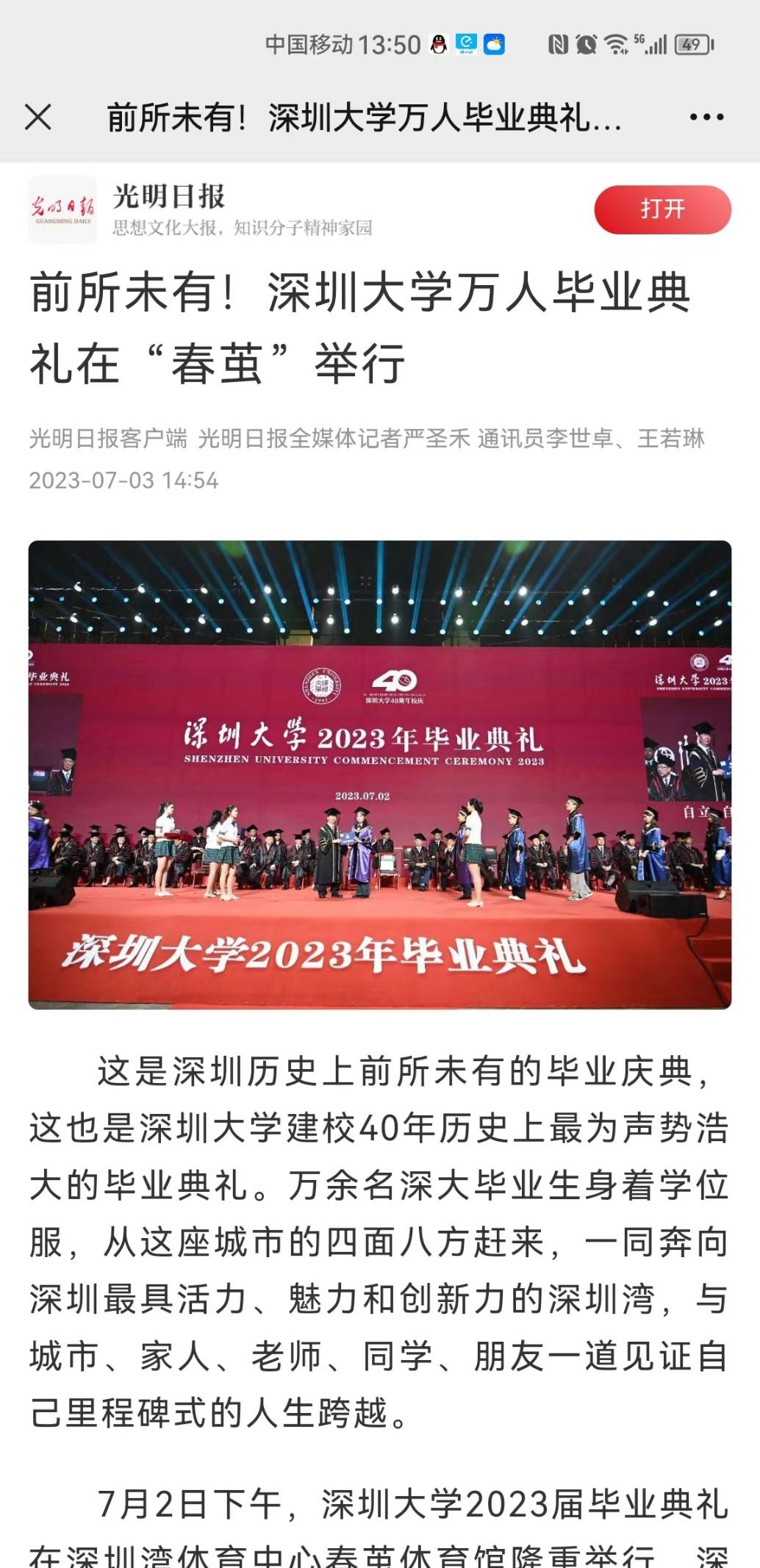 【香港商报】深圳大學萬人畢業典禮在「春繭」舉行