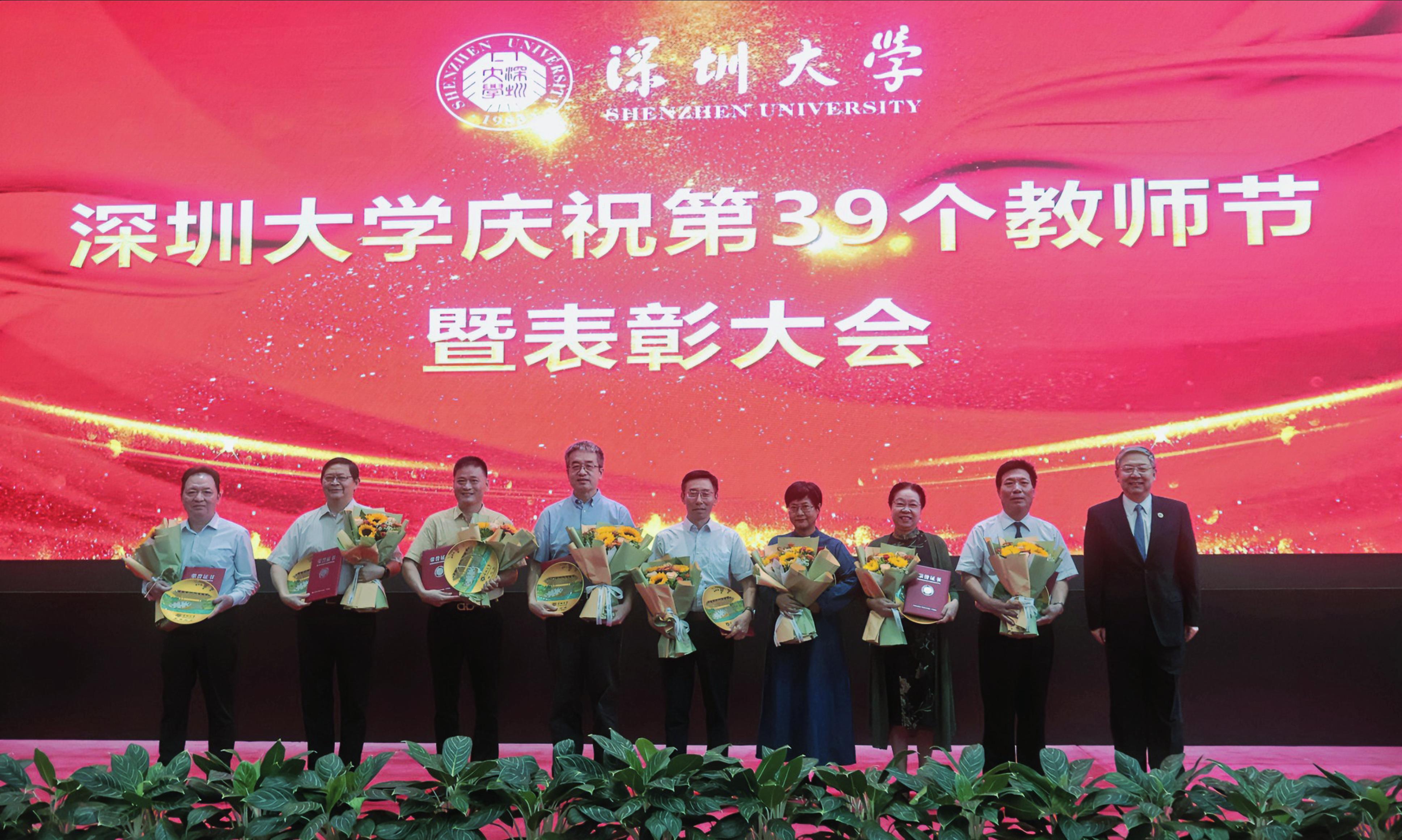 毛军发校长在表彰大会上致辞。他首先代表学校向全体教职员工以及为学校发展做出重要贡献的老领导、老同志、老教师致以节日的祝福和亲切的问候。他表示,在过去的一年,全校教师踔厉奋发、攻坚克难,推动学校办学事业不断突破、强势攀升,学科建设快速进步,科研创新能力实现跃升,创新创业教育成效显著。毛军发指出,近年来,学校把教师队伍建设作为建设一流大学的重要支撑,通过优化引才政策体系、实施教育评价改革、完善人才考评制度、健全深大特色学术荣誉体系等举措,全面深化教师队伍建设改革,初步形成了有利于优秀人才脱颖而出的制度环境,涌现了一批包括黄大年式教师团队、深圳市教书育人楷模在内的优秀教师。他希望全校各单位继续强化师资队伍建设的责任担当,注重长远规划和前瞻布局;深入贯彻落实党中央关于教育评价改革的重要精神,坚持把师德师风作为教师队伍建设的首要任务和第一标准,进一步搭建各类教师发展和成长平台,不断激发教师队伍内生动力,切实为广大教师安心从教、潜心育人、静心治学营造良好环境。