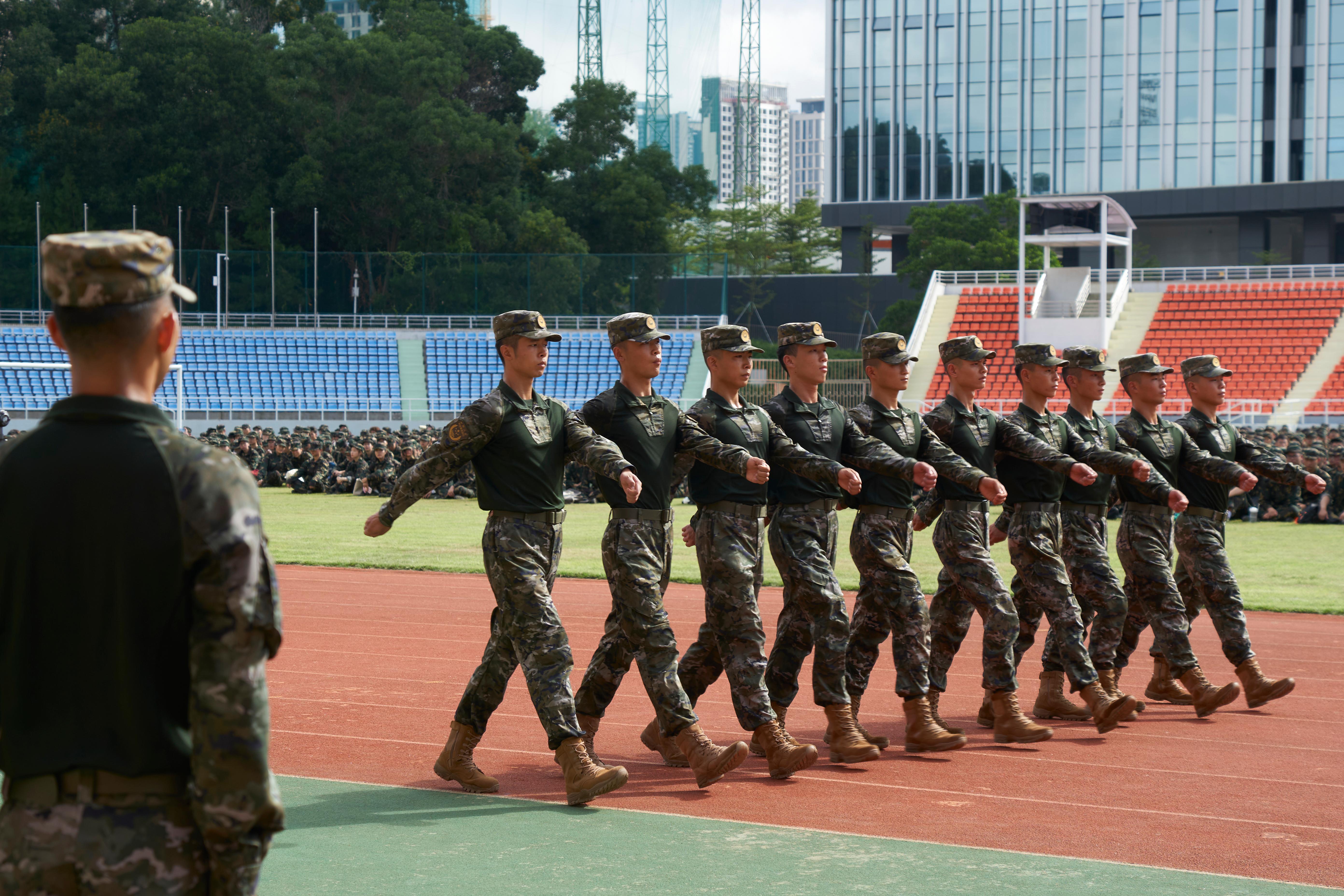 今年,乐竞平台新生军训工作在粤海、丽湖两个校区同步开展,共有6949名新生参训。军训编制分为三个团九个营99个连,其中一团2241人,在粤海校区北区元平田径场组训;二团 2299人,在粤海校区南区运动广场组训;三团2409人,在丽湖校区体育场组训。各军训团政委、副政委及连指导员由乐竞平台各学院党委副书记及老师担任,武警深圳第一支队和深圳第二支队派出优秀教官团队负责承担本次军事技能训练任务。