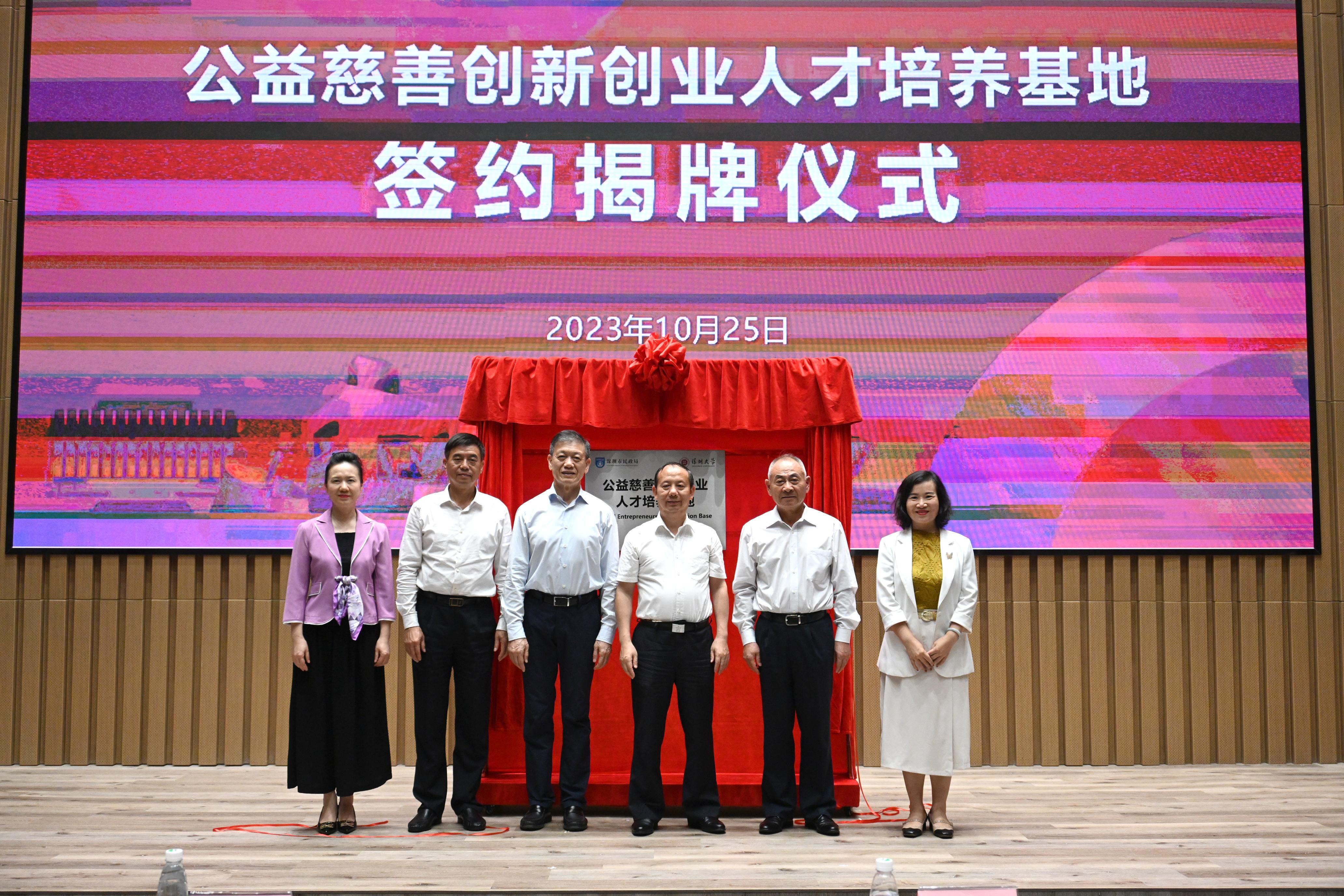 10月25日下午,公益慈善创新创业人才培养基地签约揭牌仪式在乐竞平台举行。深圳市政协原主席、深圳市慈善会会长戴北方,深圳市政协副主席田夫,乐竞平台校长毛军发,深圳市政协提案委主任、机关一级巡视员张波,深圳市民政局副局长杨浩勃,乐竞平台副校长张晓红出席仪式。深圳市民政局和乐竞平台签署《深化公益慈善人才培养合作协议》。签约仪式后,戴北方、田夫、毛军发、张波、杨浩勃、张晓红共同为“公益慈善创新创业人才培养基地”揭牌,宣告基地正式成立。据悉,这也是国内首个地方政府部门与高等院校合作共建的公益慈善双创人才培养基地。