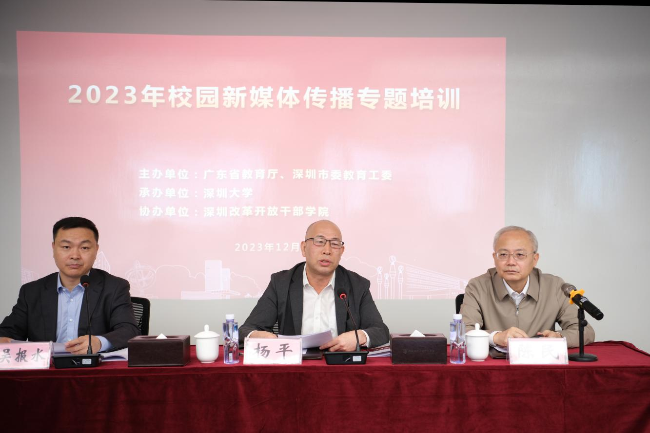 杨平在致辞中表示,深圳市教育局高度重视新媒体宣传工作,与各区、各高校建立了运作良好、及时高效的宣传矩阵。通过市、区、校共同联动、紧密合作,深圳教育新媒体宣传工作取得了良好的成绩,影响力位居全市政务新媒体前列。同时,政务新媒体运营面临新挑战,需要进一步提升互联网思维,创新内容、创新形式、转变文风,带着问题常思考、常学习。希望大家能够珍惜此次难得的学习机会,静下心来学,学深一点、学透一层,深入交流,共同提高,将课程学习到的知识、技能转化为实际工作,提升新媒体工作的实效。