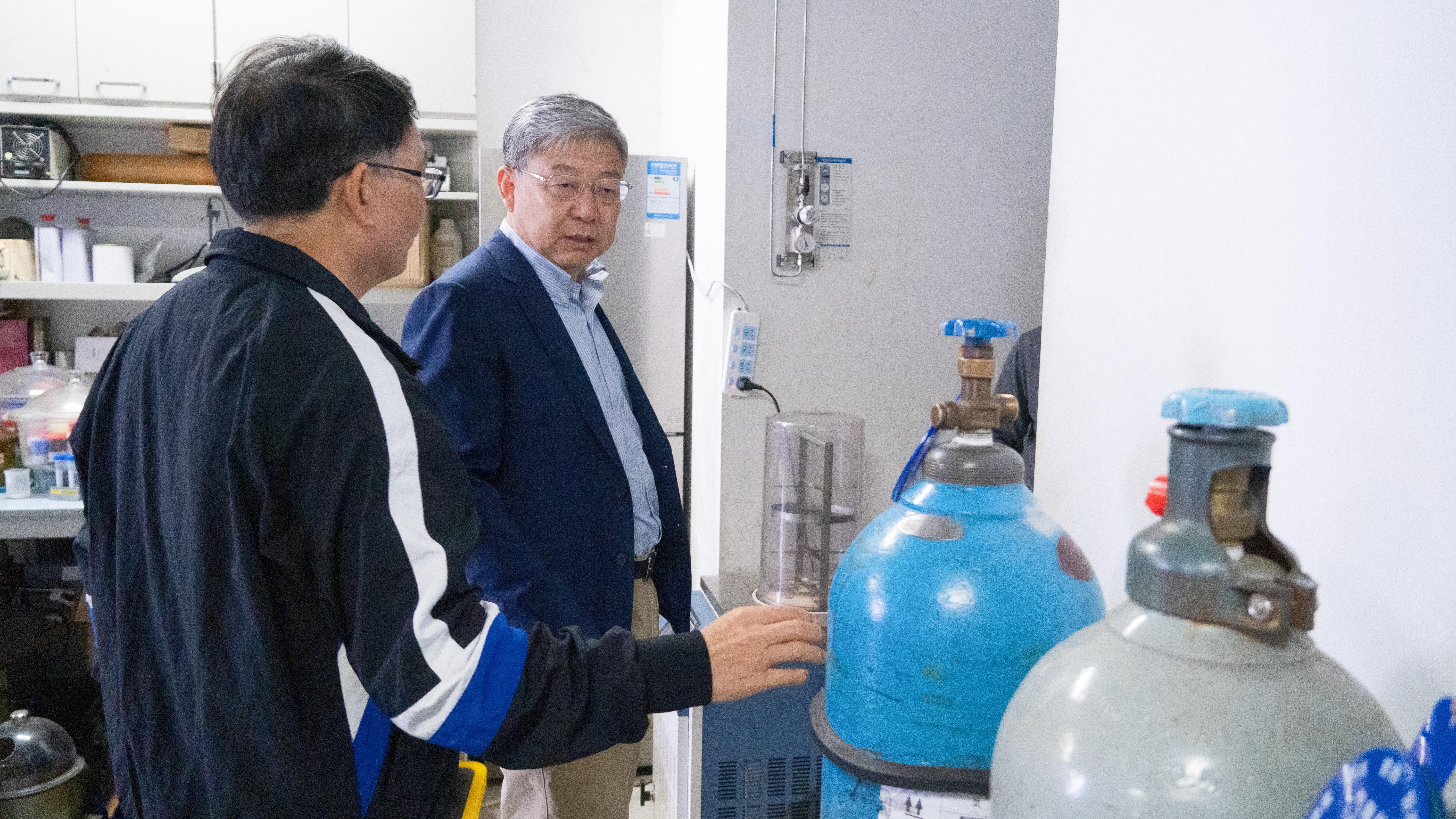 李清泉一行实地走访检查化学与环境工程学院、生命与海洋科学学院实验室。在检查过程中,李清泉强调,生化实验室涉及多种实验药品、试剂和精密仪器,务必严格遵守操作规程,提升清洁和存放标准。同时,要牢固树立安全意识,切实保障药品安全、气体安全和水源安全,为师生营造安全的实验环境。李清泉与寒假期间留校做实验的学生交流,并提醒他们注意实验室的整洁和通风状况。他指出:“实验室人员众多、物品繁杂,务必确保过道畅通无阻。特别要关注易燃易爆物品的存放和处理,定期进行清理,消除消防安全隐患。”