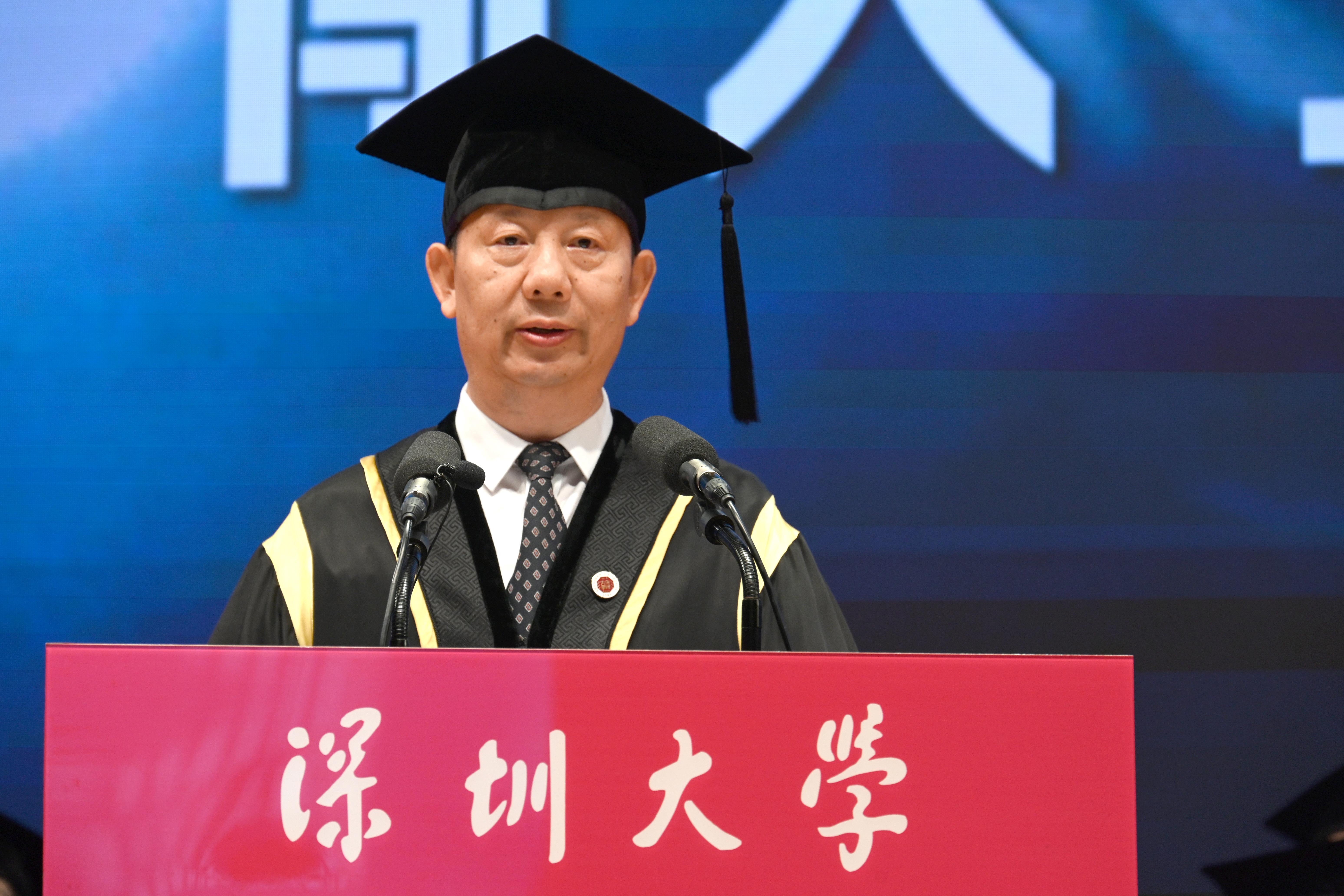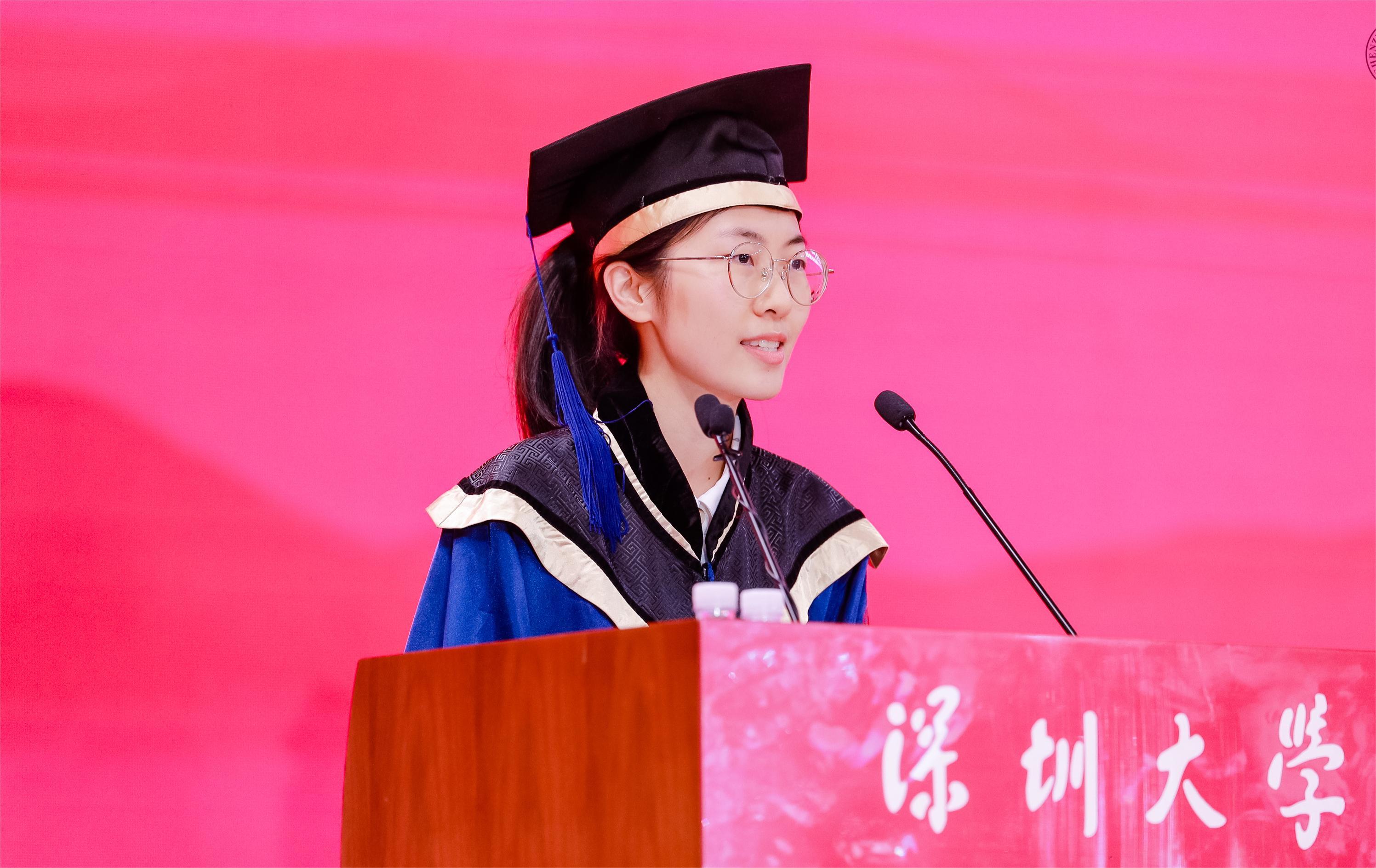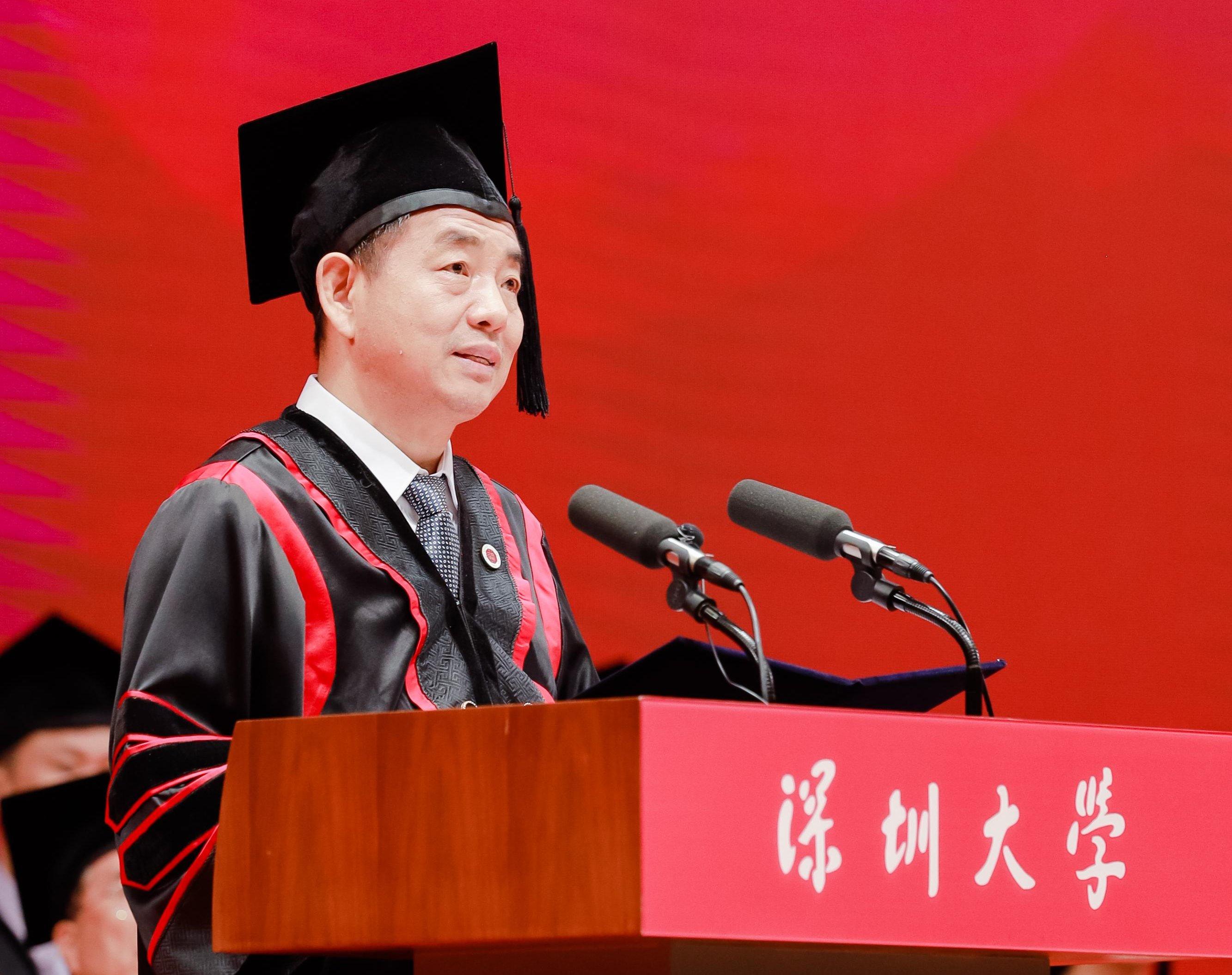 在粤海校区,计算机与软件学院院长黄惠作为教师代表发言。她说,能够见证一群年轻而又充满希望的学子完成他们求知路上的一个重要里程碑,与他们共同迎接人生的新起点,是一名教师充满喜悦和骄傲的时刻。她以《勇者不惧,希望至美,热爱永恒》为题,为即将踏上新征程的毕业生带来鼓励。勇者不惧,不惧者幸福。一个人若能无惧于心,便能坦然面对生活中的风风雨雨,享受每一个当下。万物之中,希望至美。无论未来是在科学研究中遭遇瓶颈,还是在工作生活中饱受考验,只要希望不灭,就有破局的力量,人生随时可以重来。唯有热爱,可抵岁月漫长。必须要有持久的热情和不断的探索精神,怀揣对知识、对技术最深沉的热爱,才能在这不断变革的时代大潮中立于不败。