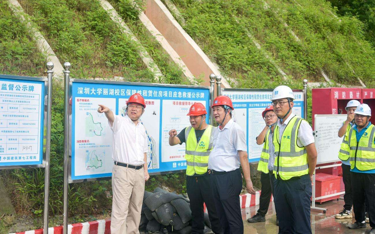 7月21日下午,乐竞平台党委书记李清泉、副校长李永华一行来到丽湖校区科研楼和保障性住房项目建设工地,调研了解工程有关情况。深圳市建筑工务署、深圳市安居集团、中建五局等单位相关负责人和乐竞平台相关职能部门负责人陪同。