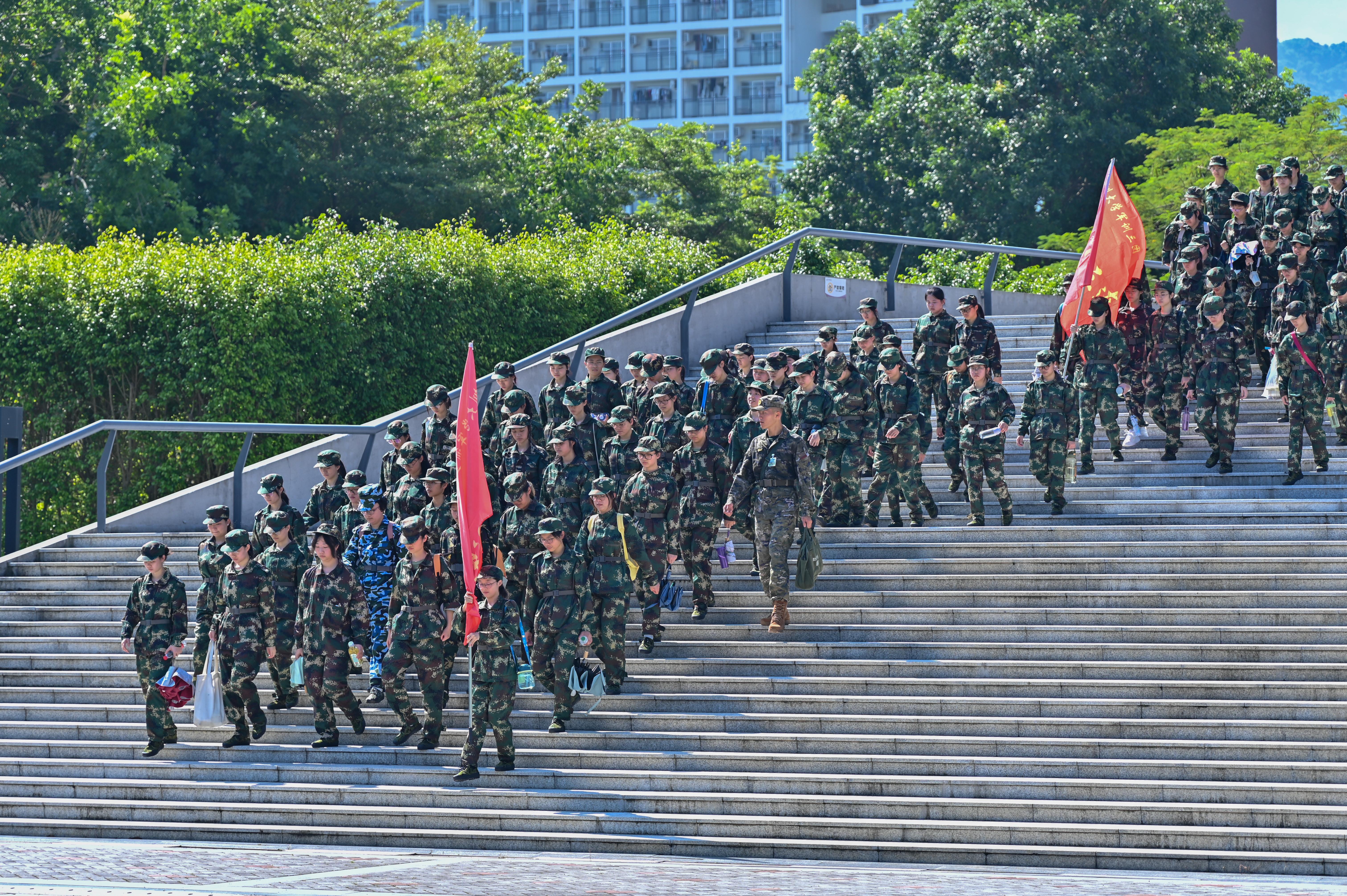 今年,乐竞平台共有6730名新生在粤海校区、丽湖校区同时开展军训。军训编制分为三个团九个营108个连:其中一团2180人,在粤海校区田径场组训;二团2325人,在南区运动场组训;三团2225人,在丽湖校区至快体育场组训。各军训团政委、副政委及连指导员由我校老师担任,武警深圳第一支队派出优秀教官团队负责承担本次军事技能训练任务。