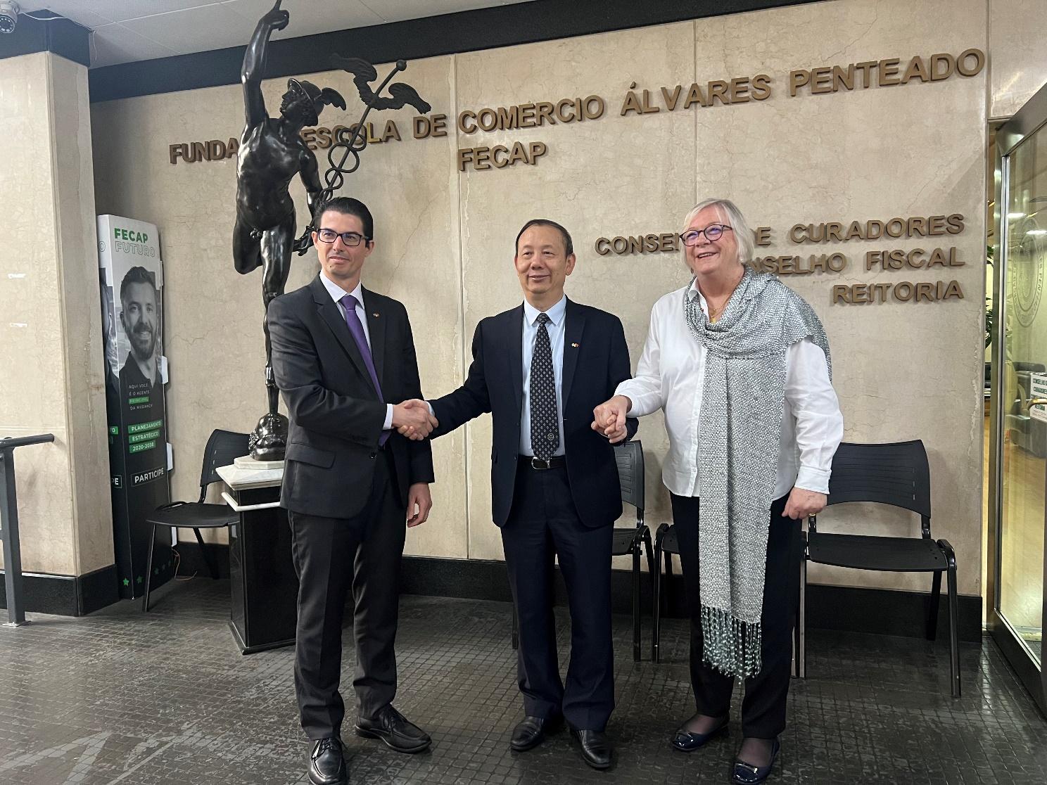 作为深圳南特金融科技学院联合管理委员会主任,毛军发还与法国南特高等商学院负责人一道访问了南特高等商学院在巴西的合作伙伴院校巴西阿尔瓦雷斯·本蒂亚多商学院(FECAP)和丹·卡布瑞尔商学院(FDC),举行了联合管理委员会会议,并就南特金融科技学院与两所商科院校的合作达成协议。