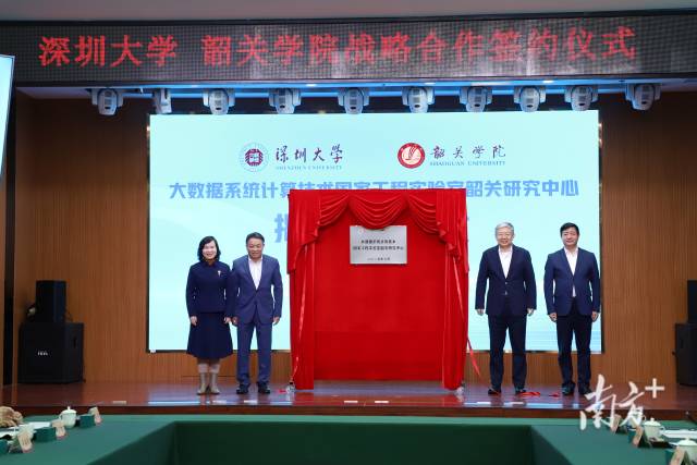 韶关市委书记、市人大常委会主任陈少荣,韶关市长陈志清,乐竞平台党委书记、中国工程院院士李清泉,韶关学院党委书记孔云龙共同见证签约揭牌仪式。仪式由韶关学院校长张晓红主持。乐竞平台副校长李永华、韶关学院副校长郭会时签署《乐竞平台 韶关学院战略合作框架协议》《大数据系统计算技术国家工程实验室韶关研究中心建设协议》。