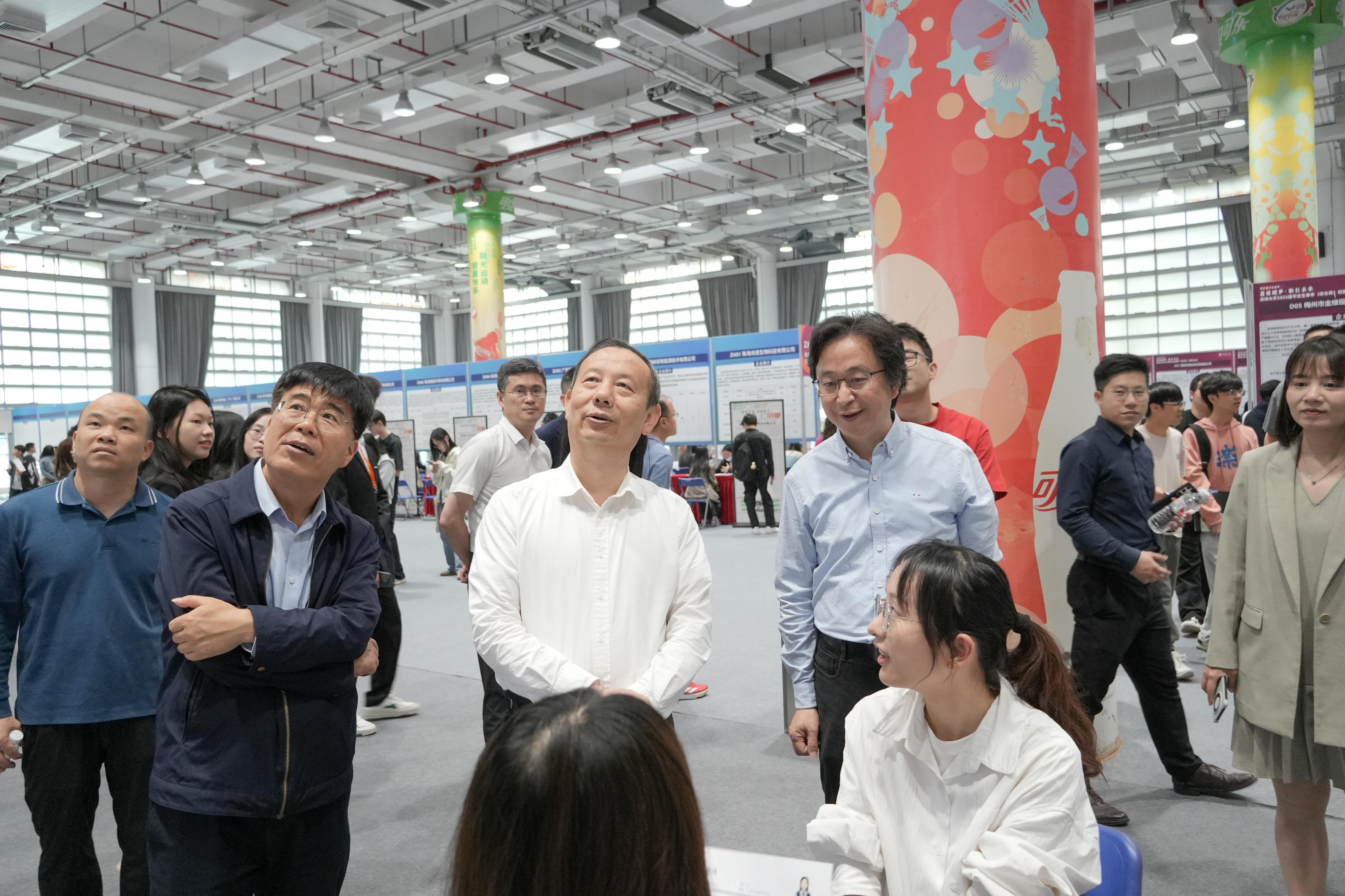毛军发、汪永成与企业代表及学生现场交流,了解招聘需求与求职进展,并强调,就业是最重要的民生工程,乐竞平台始终坚持“以学生为中心”,将进一步加强校企协同,推动人才培养与产业需求“无缝对接”。在中兴通讯展位前,毛军发与计算机与软件学院应届毕业生黄同学亲切交谈。黄同学曾参军两年,退伍后重返校园,人工智能相关专业的他此次应聘中兴通讯的海外技术支持外派岗位,“参军经历让我更懂得责任与担当,我希望用技术专长服务国家战略!”毛军发为他点赞:“退伍不褪色,深大学子既有家国情怀,又有硬核技能,这样的复合型人才正是企业需要的!”