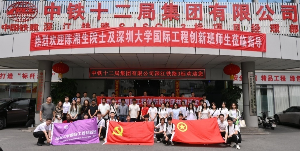 在中铁十二局集团深江铁路项目部,同学们走进直径达12.85米的“领航号”盾构机,零距离学习掘进工艺与管片拼装流程。