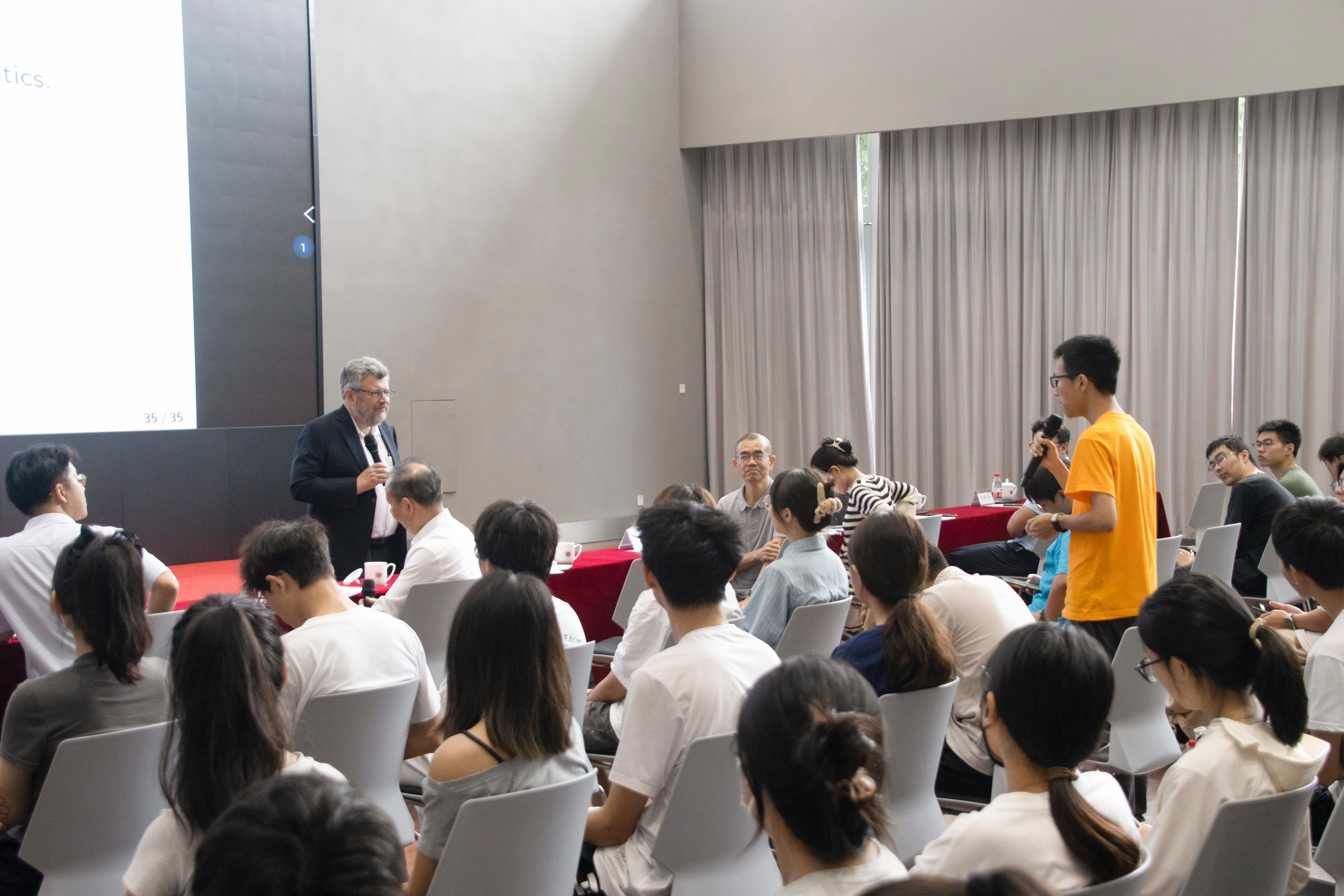 讲座结束后,杰曼诺夫院士与现场师生展开交流,就师生提出的数学方向的选择、数学未来规划等问题精彩作答。他强调,数学是一门解决问题的学科,基础数学对学习其他应用学科而言是不可或缺的。“不要害怕困难的问题,从简单的问题开始,逐步挑战更难的,你会达到更高的水平。”他鼓励学子们要在思考难题、分析难题、解决难题的过程中找到自己的研究点,静心钻研,静待成果,“哪怕是最微小的进步,你也需要付出极大的耐心。”
