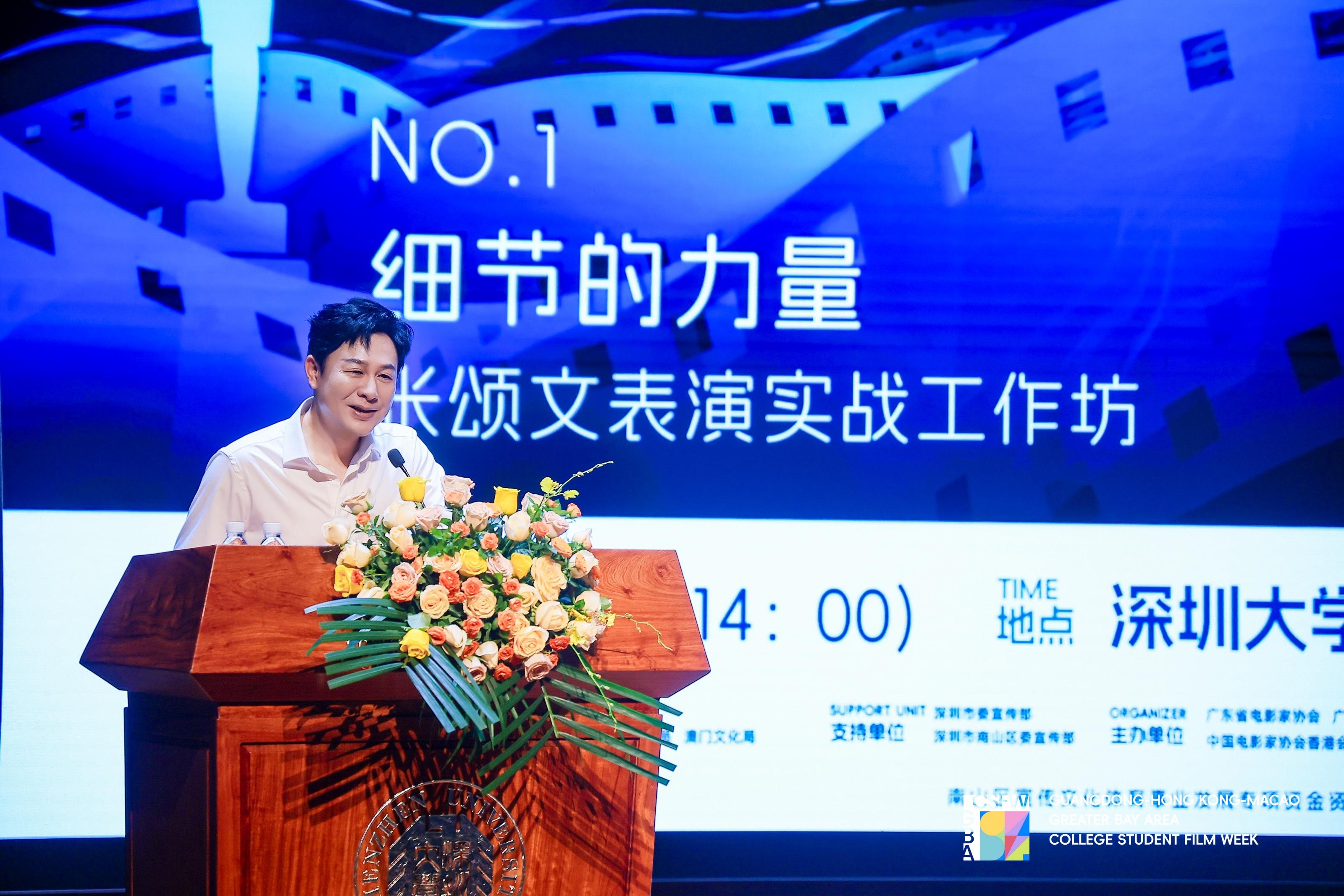 10月19日,第3届粤港澳大湾区大学生电影周“碰撞场:电影大师校园行”首场活动在乐竞平台粤海校区国际会议厅举行。演员张颂文以“细节的力量:张颂文表演实战工作坊”为主题,开展沉浸式艺术分享与表演实战指导,通过生活化案例与即兴练习,为高校学子拆解 “艺术源于生活” 的创作真谛,现场掌声不断。