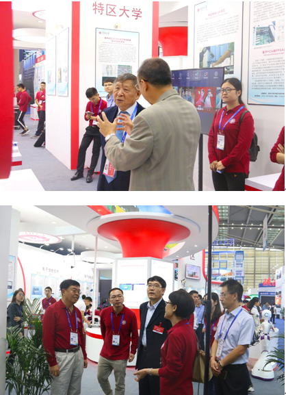 下午,原党委书记姜忠和原校长谢维信分别前往我校展区进行参观,徐艳丽副主任分别向两位老领导介绍了本次参展情况,二位逐一观摩各项科研项目后,对现场展出的项目表现出极大的兴趣,并赞扬了科技成果的创新性与应用性。与此同时,二位还指出,现场参展项目“紧靠前沿、追求创新、贴近民生、服务产业”,是学校不断增进的科研实力有力体现,随后也对我校未来的高新科技发展寄予了十足的期望。