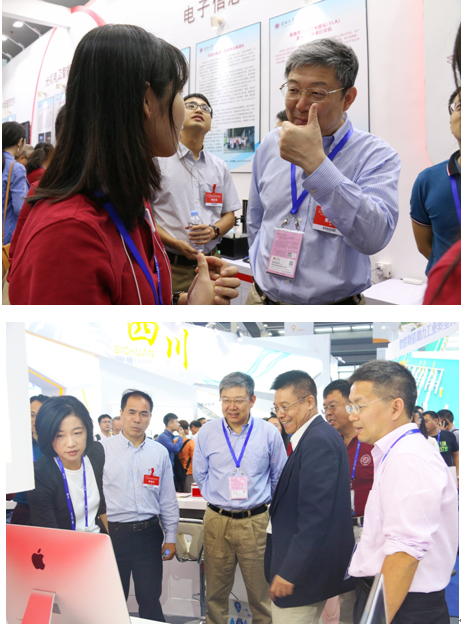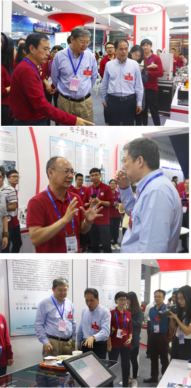 11月14日下午,李清泉校长在科技部主任文振焜、副主任徐艳丽、党政办副主任刘海山的陪同下,莅临我校高交会展区观摩指导。