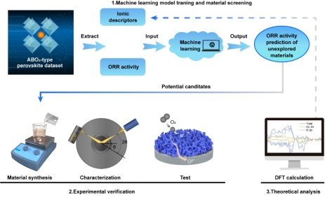 图一基于机器学习的固体氧化物燃料电池阴极材料开发总体工作流程图