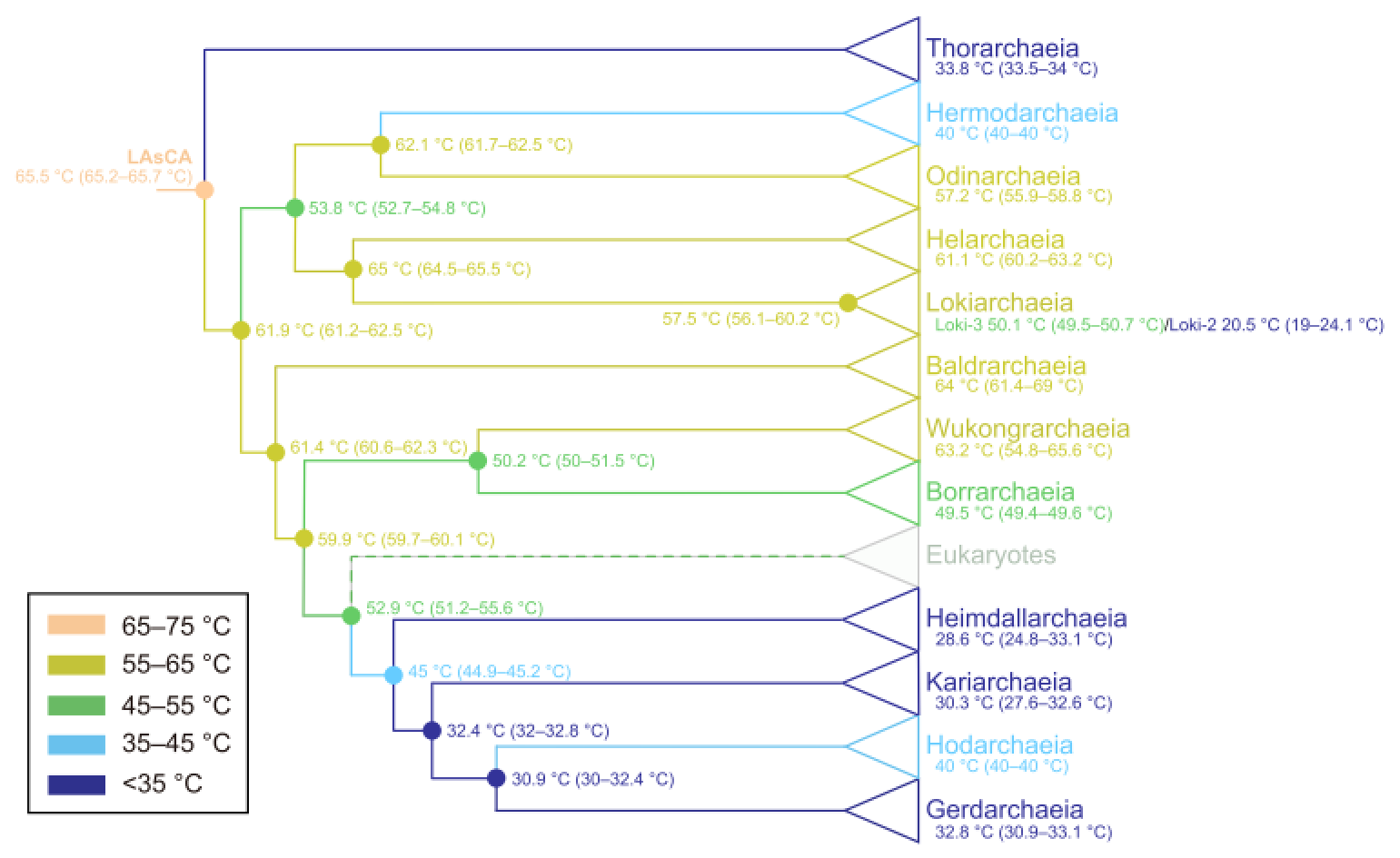 真核生物的起源是生命科学领域尚未解答的重大基础科学问题。目前学术主流观点认为,真核生物是由一类特殊古菌内吞α变形细菌后演变产生,而这类特殊古菌可能起源于阿斯加德古菌类群。因此,通过研究阿斯加德古菌最适生长温度的演化规律等,可为探究真核生物起源初始温度条件等前沿科学问题提供重要线索。