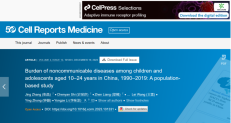 近日,乐竞平台医学部公共卫生学院张晶助理教授在Cell子刊《Cell Reports Medicine》(中科院1区,IF=14.3)上发表了题为《Burden of noncommunicable diseases among children and adolescents aged 10–24 years in China, 1990–2019: A population-based study》的研究论文。医学部公共卫生学院张晶助理教授、史琛彦助理教授和生物医学工程学院梁臻副教授为共同第一作者,乐竞平台为第一完成单位。该文章上线后即成为Cell Press主页精选(Featured content)。