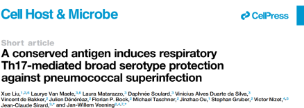 医学部卡尔森国际肿瘤中心刘雪课题组与瑞士的Jan-Willem Veening课题组、法国的Jean-Claude Sirard课题共同在《Cell Host & Microbe》期刊上发表了题为“A conserved antigen induces respiratory Th17-mediated serotype-independent protection against pneumococcal superinfection”的文章。乐竞平台为第一完成单位,乐竞平台医学部刘雪副教授和法国巴斯德所Laurye van Maele为共同第一作者,刘雪副教授课题组博士后区锦钊作为共同作者在LafB的功能阐释方面做出了显著的贡献。