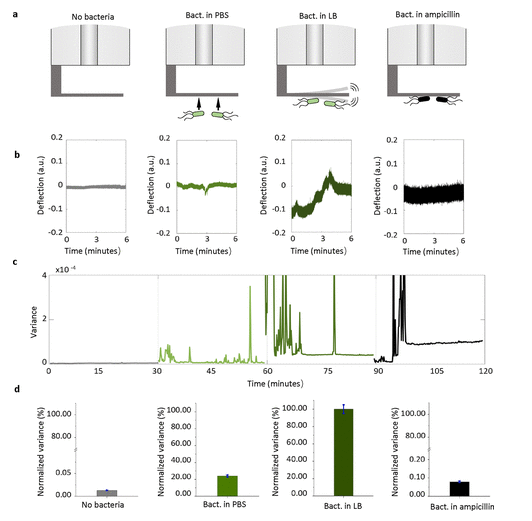 图3.利用光纤纳米振动传感器对氨苄青霉素敏感的大肠杆菌进行纳米活动检测