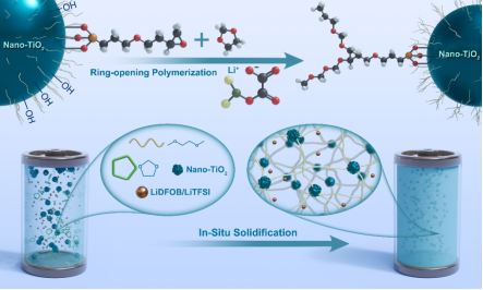 图1.纳米粒子杂化交联复合聚合物电解质的原位制备示意图