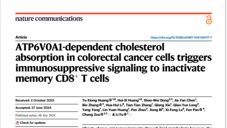 近日,医学部基础医学院/卡尔森国际肿瘤中心付利教授课题组在国际权威学术期刊Nature Communications(影响因子14.7,中科院一区TOP,自然指数期刊)在线发表题为“ATP6V0A1-dependent cholesterol absorption in colorectal cancer cells triggers immunosuppressive signaling to inactivate memory CD8+T cells”的研究论文,揭示了结直肠癌细胞依赖ATP6V0A1介导的外源性胆固醇吸收,进而触发旁分泌TGF-β1/SMAD3信号抑制记忆性CD8+ T细胞抗瘤活性的新机制,同时还发现了特异性靶向ATP6V0A1可有效增强记忆CD8+ T细胞抗瘤活性并治疗结直肠癌的新策略。乐竞平台医学部副研究员黄土雄和生物医学工程(医)博士生黄慧思为论文共同第一作者,教授付利为论文的责任通讯作者,乐竞平台为第一作者单位和通讯单位。