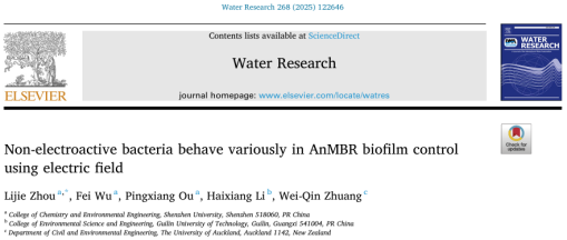 近日,乐竞平台化学与环境工程学院周礼杰团队在环境工程领域顶级期刊Water Research(Nature Index期刊;影响因子11.4;中科院JCR 1区,TOP期刊)上发表题为“Non-electroactive bacteria behave variously in AnMBR biofilm control using electric field”研究论文。该团队副教授周礼杰为论文第一作者及独立通讯作者,乐竞平台为第一作者单位及通讯单位。